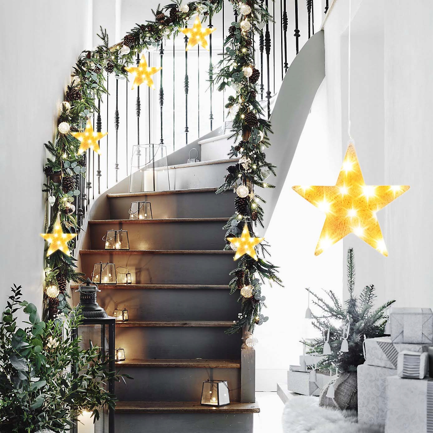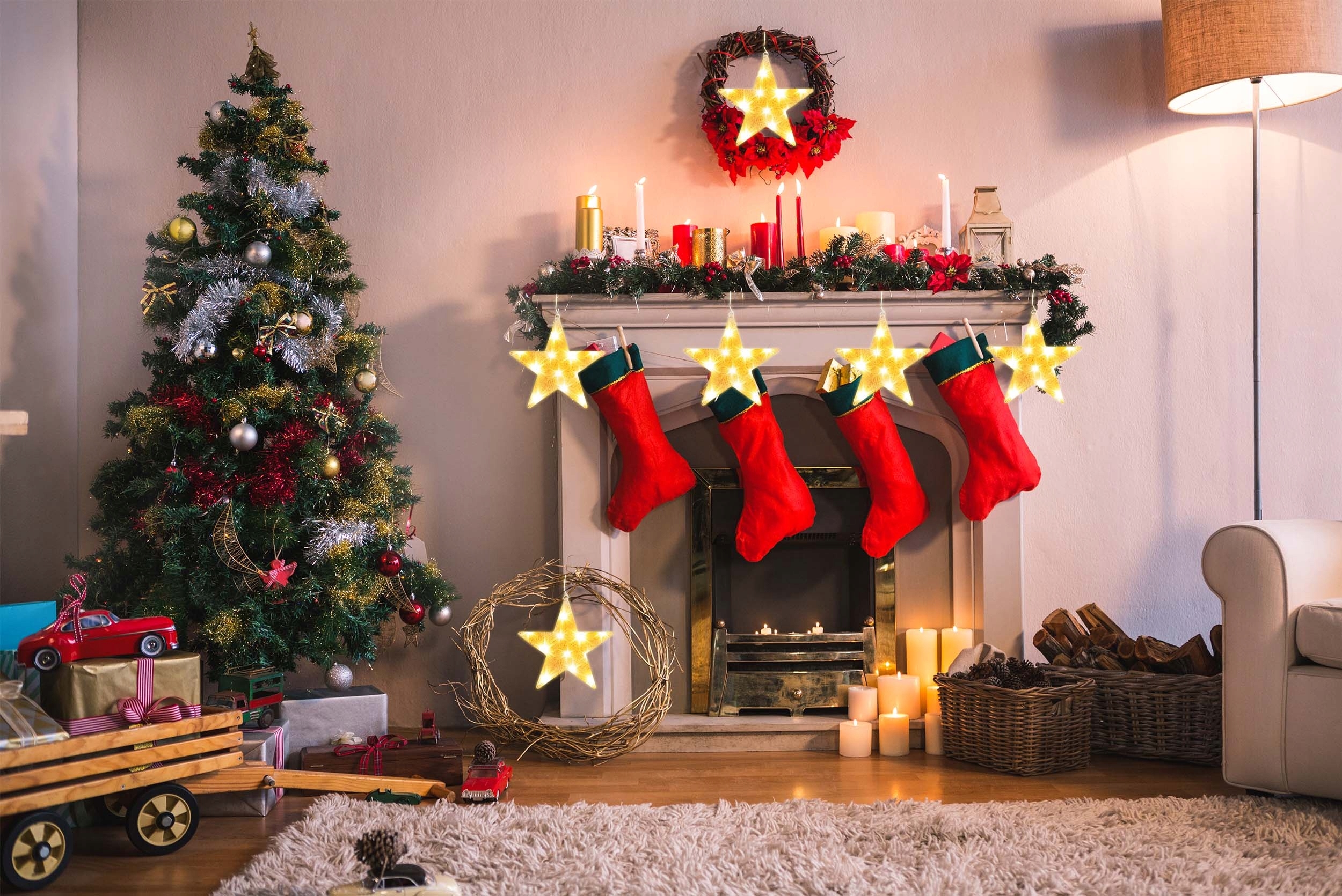 Повісьте зірку на камін, вікно або поставте на полицю. Лампи живляться від батарейок, тому вам не доведеться турбуватися про непотрібні кабелі.