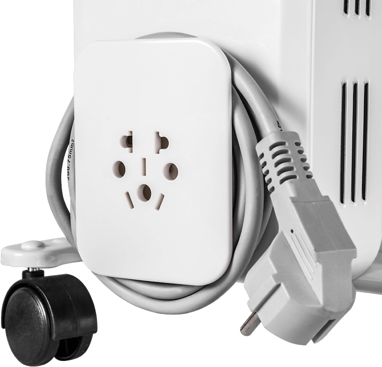 7-переведений масляний радіатор, 3 градусів регулювання 500/1000 / 1500 Вт, безперечно регульований термостат, подвійний тепловий захист, освітлення освітлення, ручка та колеса для легкого перенесення, розміщення для кочення кабелю, макс. потужність 1500 Вт
