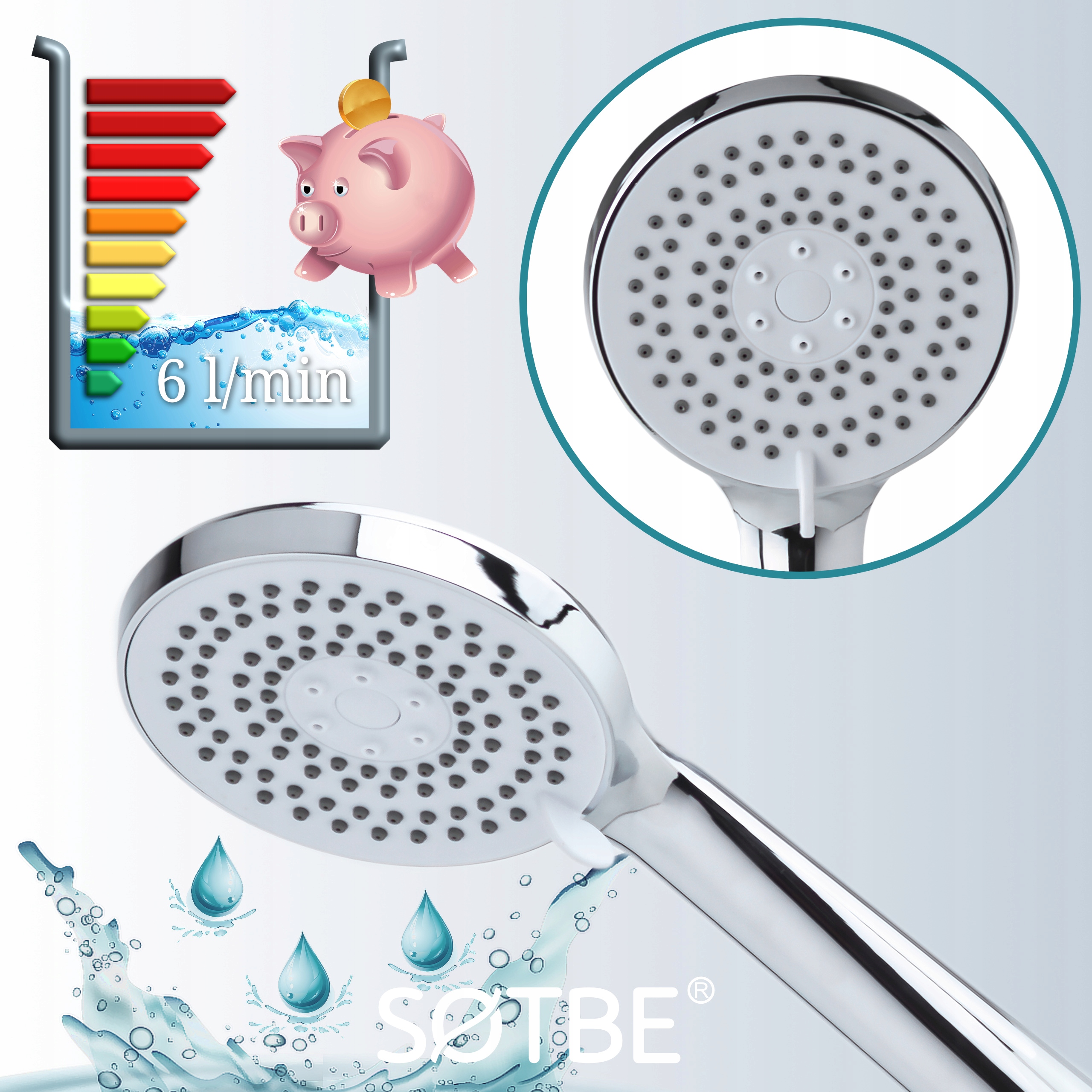 ✅ Ефефективність - Наш слухавка споживає лише 6 літрів води, до 60% менше, ніж стандартні моделі.