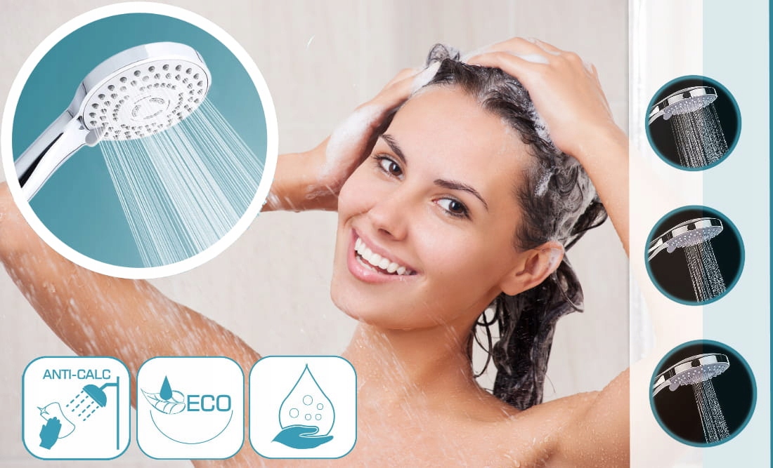 - форсунки забезпечують СИЛЬНИЙ тиск, незважаючи на низький потік води = менше споживання води та енергії, необхідної для її нагрівання