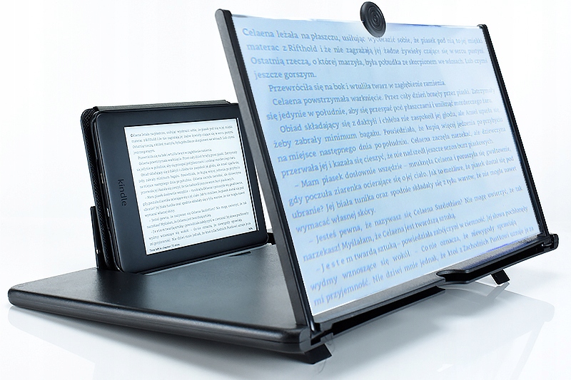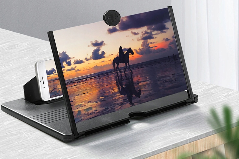 ✅ Вбудована підставка для телефону дозволяє дивитися збільшені відео без рук. Екран працює без додатків, кабелів, батарей або джерела живлення.