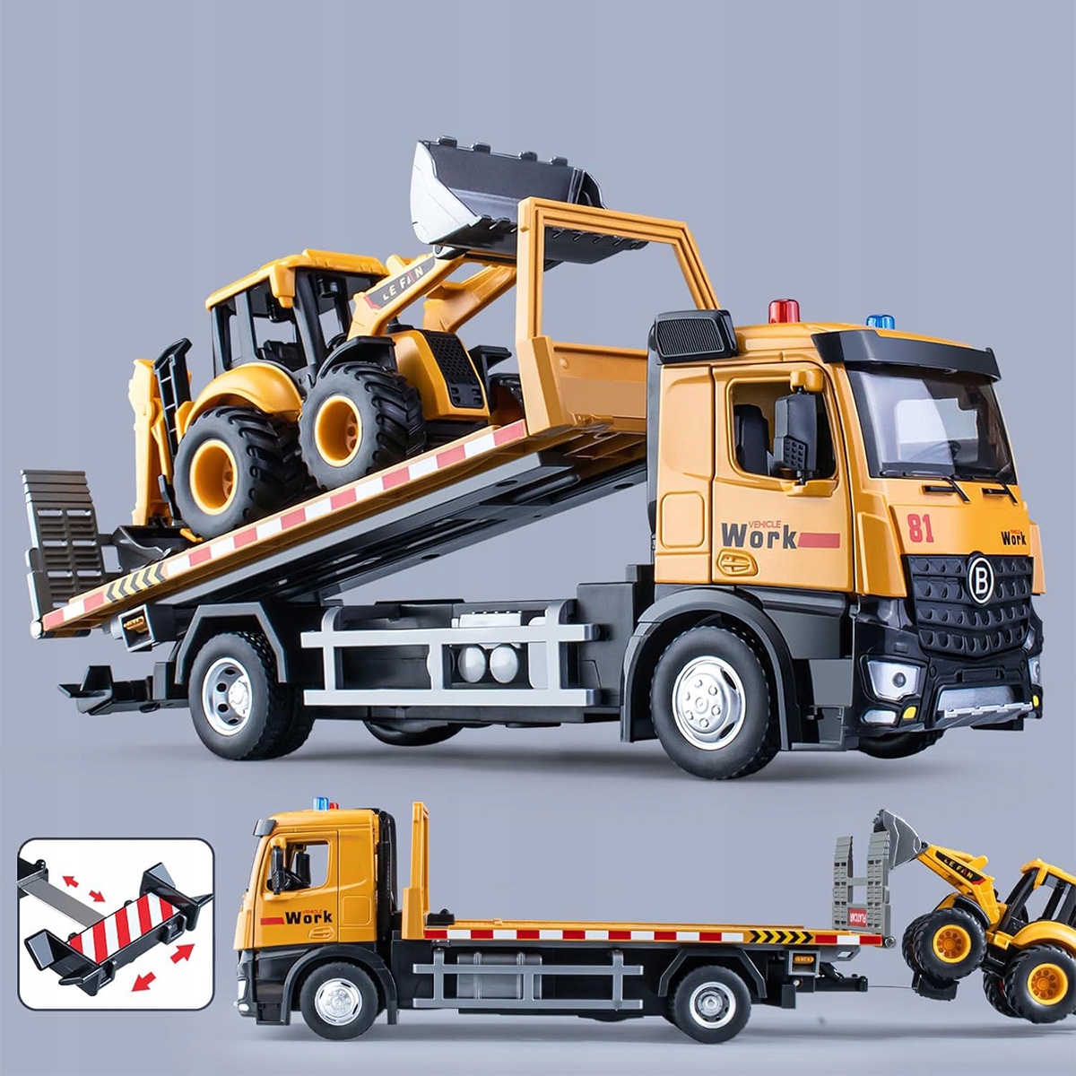 🚗Іграшковий трейлер, металева кабіна, трейлер із платформою, світлом і звуком