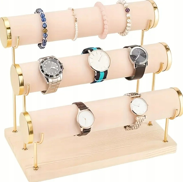 EKSPOZYTOR STOJAK NA BIŻUTERIĘ ZEGARKI BRANSOLETKI 3 POZIOMY ECRU