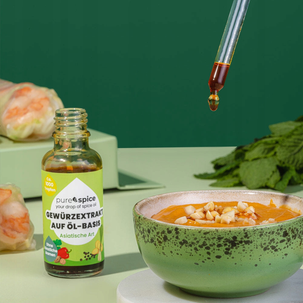 АЗІЙСЬКА СПЕЦІЯ Принесіть азіатську спецію додому в особливо інтенсивній та рідкій формі. Завдяки екстракту спецій «Asian Art» від pure & spice ваші азіатські овочі можна приправляти: скільки завгодно — точно до краплі.