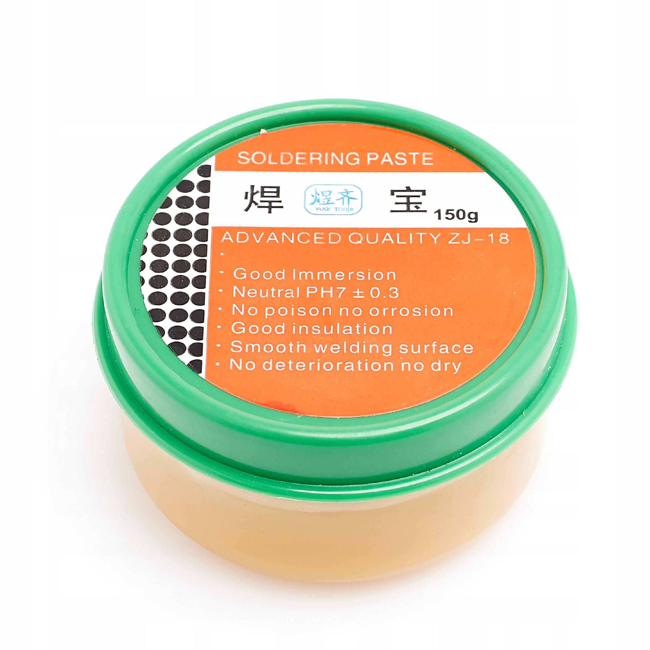 Високоякісна паяльна паста, яка легко розмазується, має високу інтенсивність і змочуваність поверхні спаювання. Не погіршує властивості електронних компонентів IC і PCB, не піддається корозії, не потребує очищення. Температура кипіння лише трохи вище температури плавлення спаяного олова. Має консистенцію гелю, що полегшує нанесення.