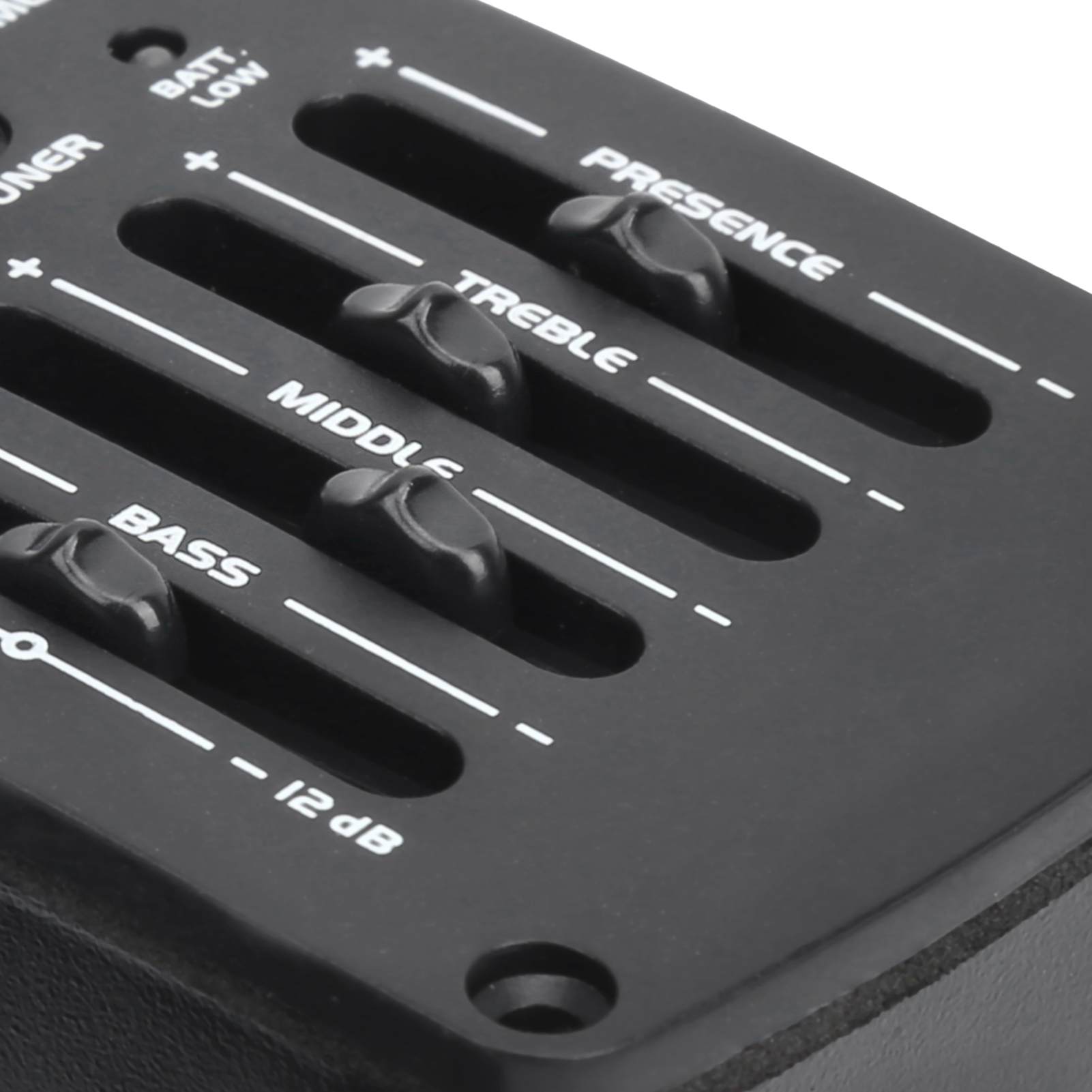 5. Ця гітара працює від акумулятора 9 В і має низький індикатор рівня акумулятора (не включається).