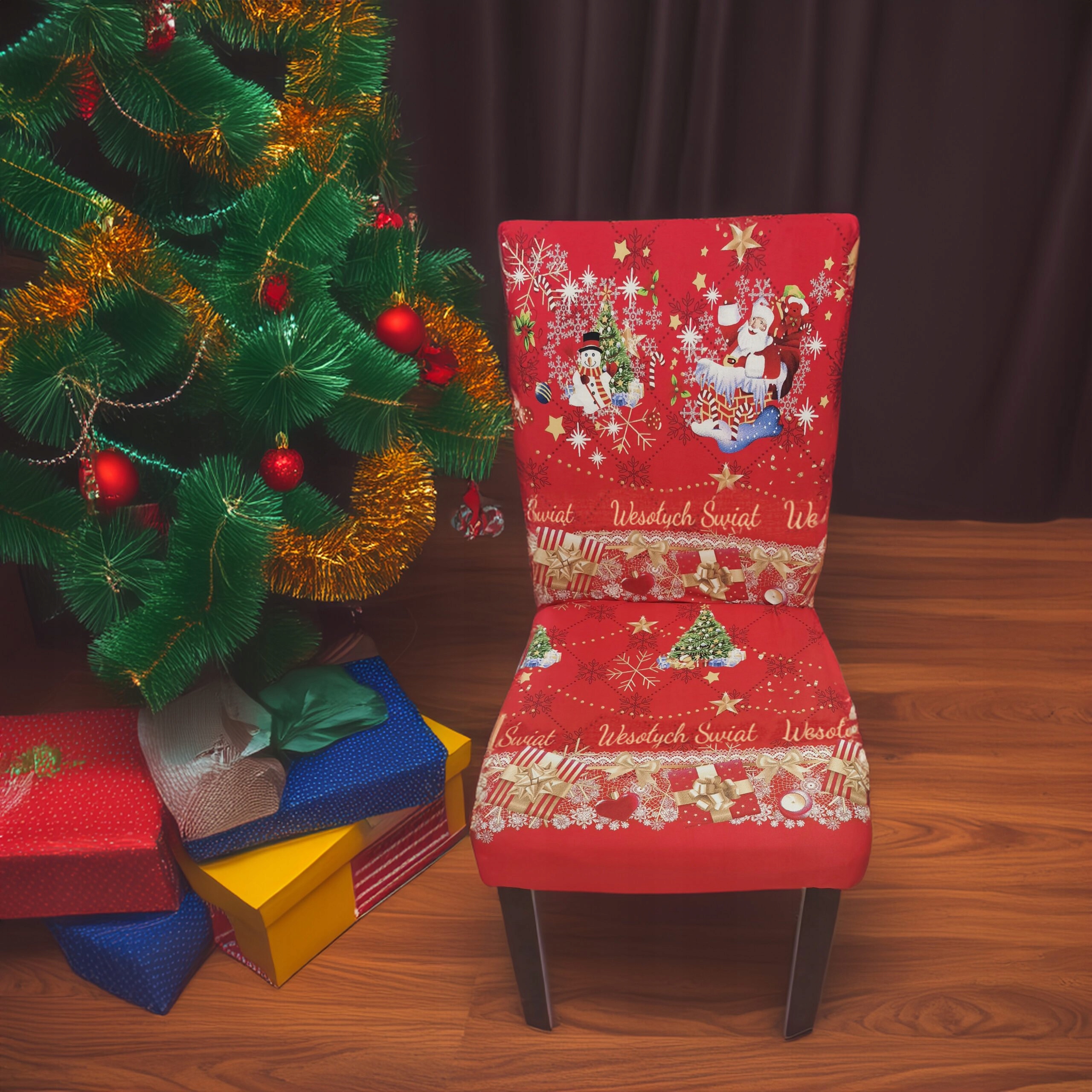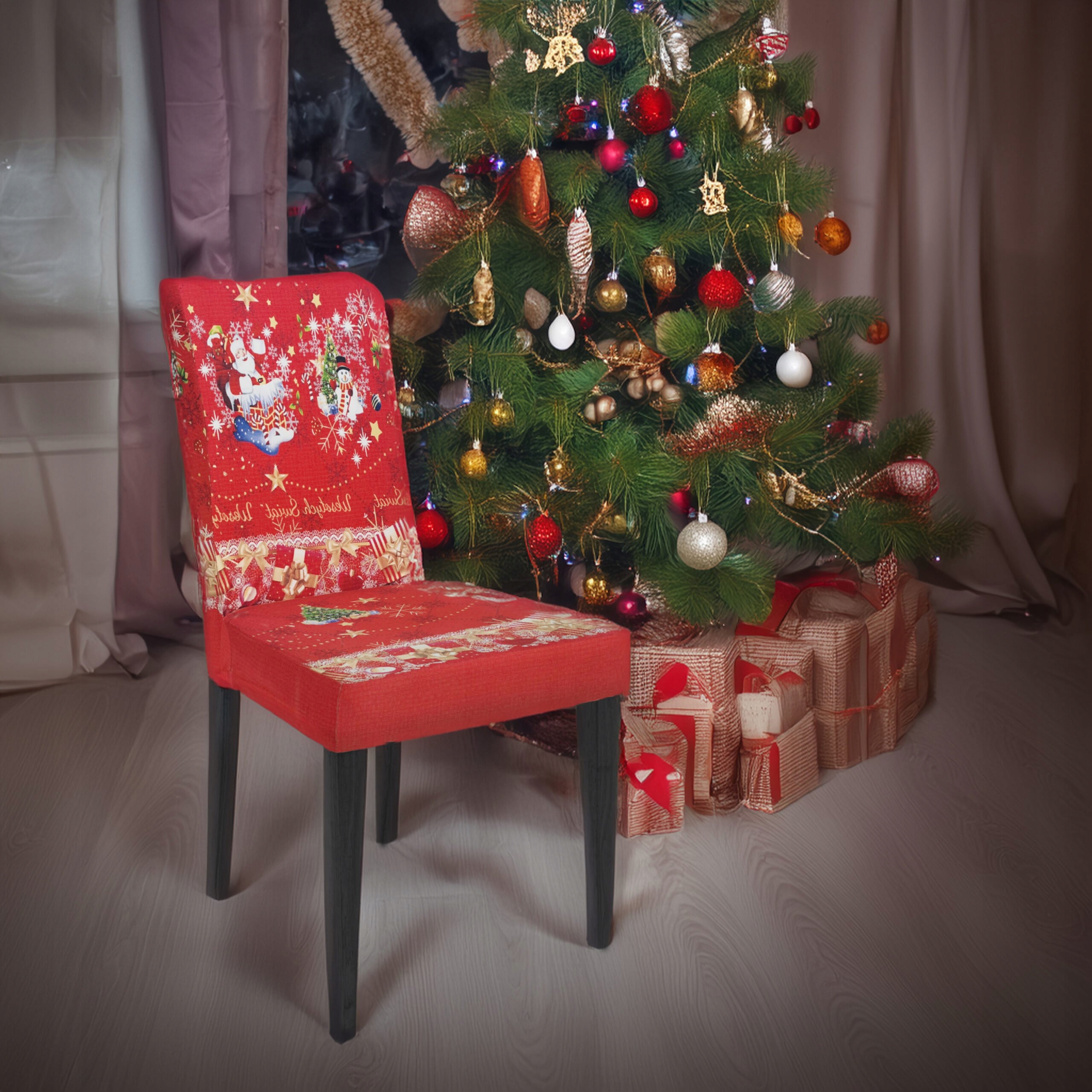 Наше різдвяне покриття — ідеальний спосіб миттєво оновити вигляд вашої вітальні, їдальні чи офісу. Виготовлений з високоякісного, гнучкого матеріалу, чохол ідеально адаптується до більшості стандартних стільців, тому ідеально прилягає та надає інтер’єру святковий характер. 🎁