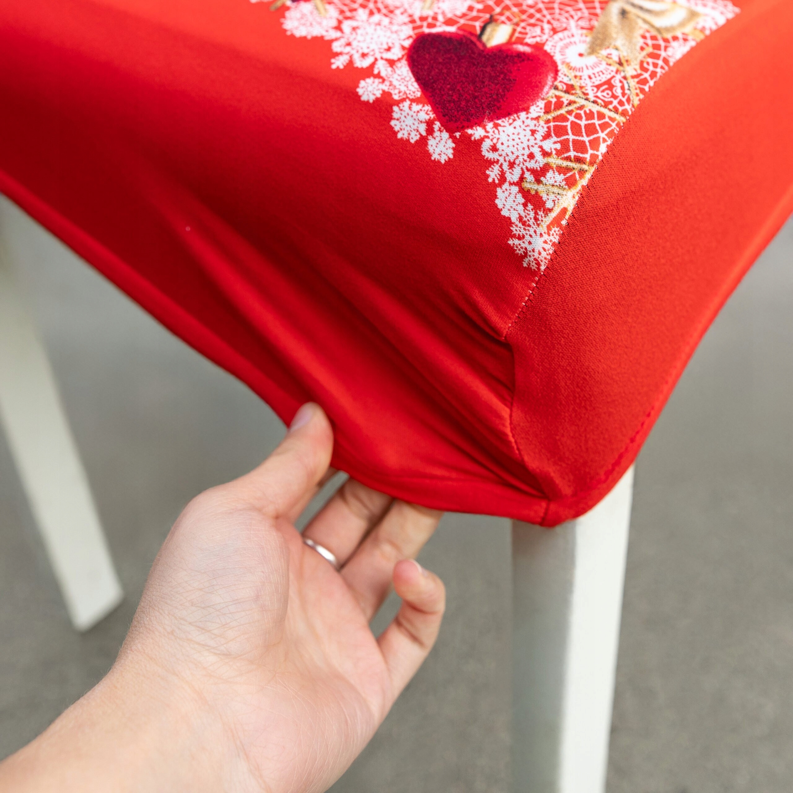 ✅ Легко надягати та знімати - завдяки вшитій еластичній стрічкі чохол одягається за кілька секунд, а після свят його так само легко можна зняти.