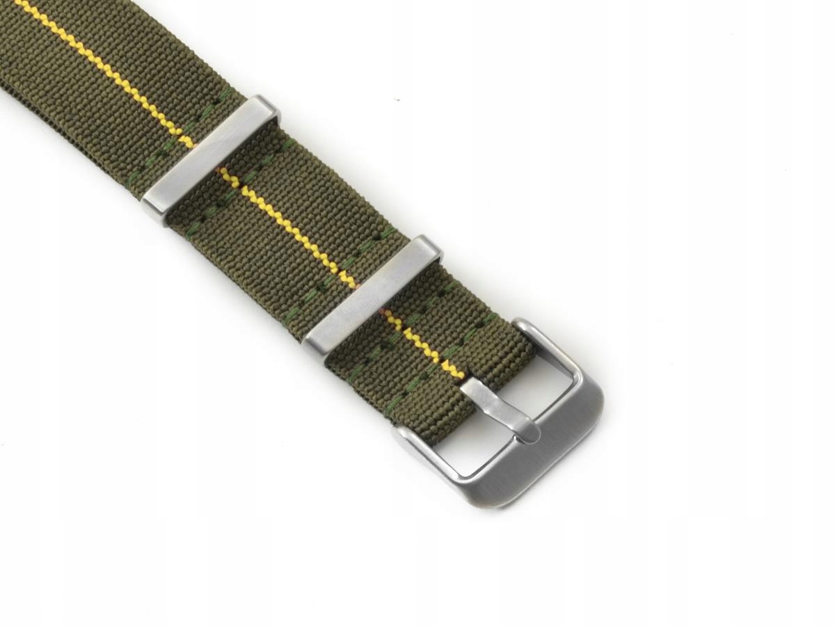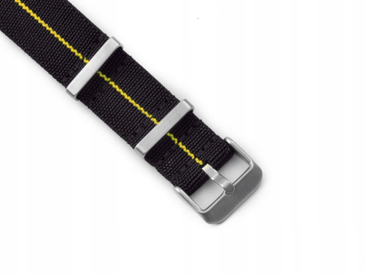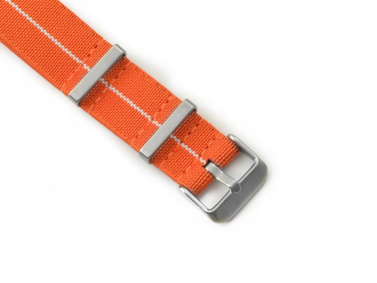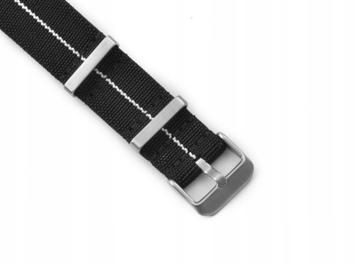 Цей тип ремінця НАТО виготовляється з нейлону з додаванням лайкри, що робить його гнучким і ідеально сидить на зап’ясті. Крім того, тут використовуються пряжка та кільця атласного кольору, що додає ременю виразності.