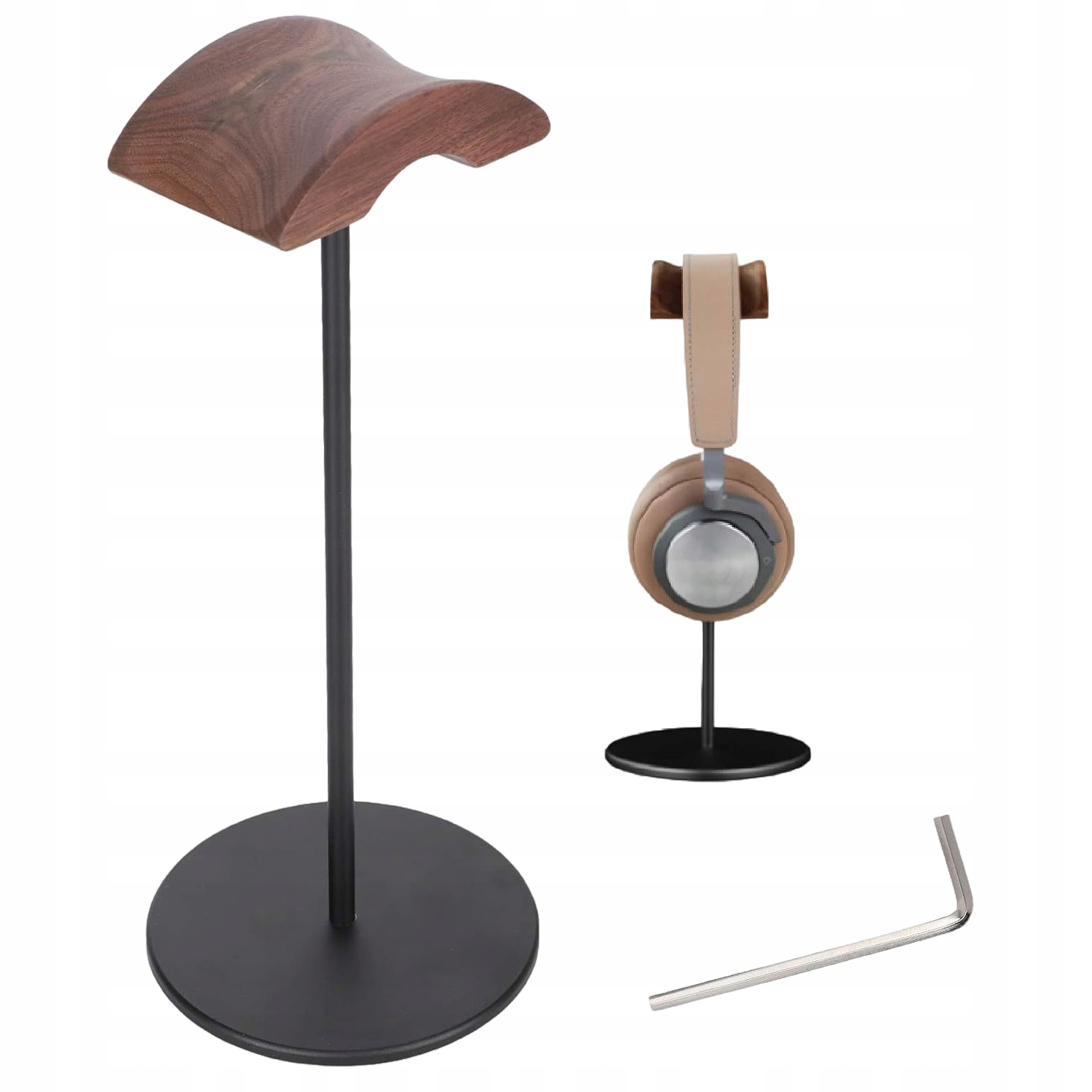 Підставка для навушників із натурального горіхового дерева та високоякісного металу забезпечує стабільність та довговічність. Поєднання цих матеріалів гарантує міцну основу, яка витримає щоденне використання, але при цьому виглядає дуже естетично на столі.