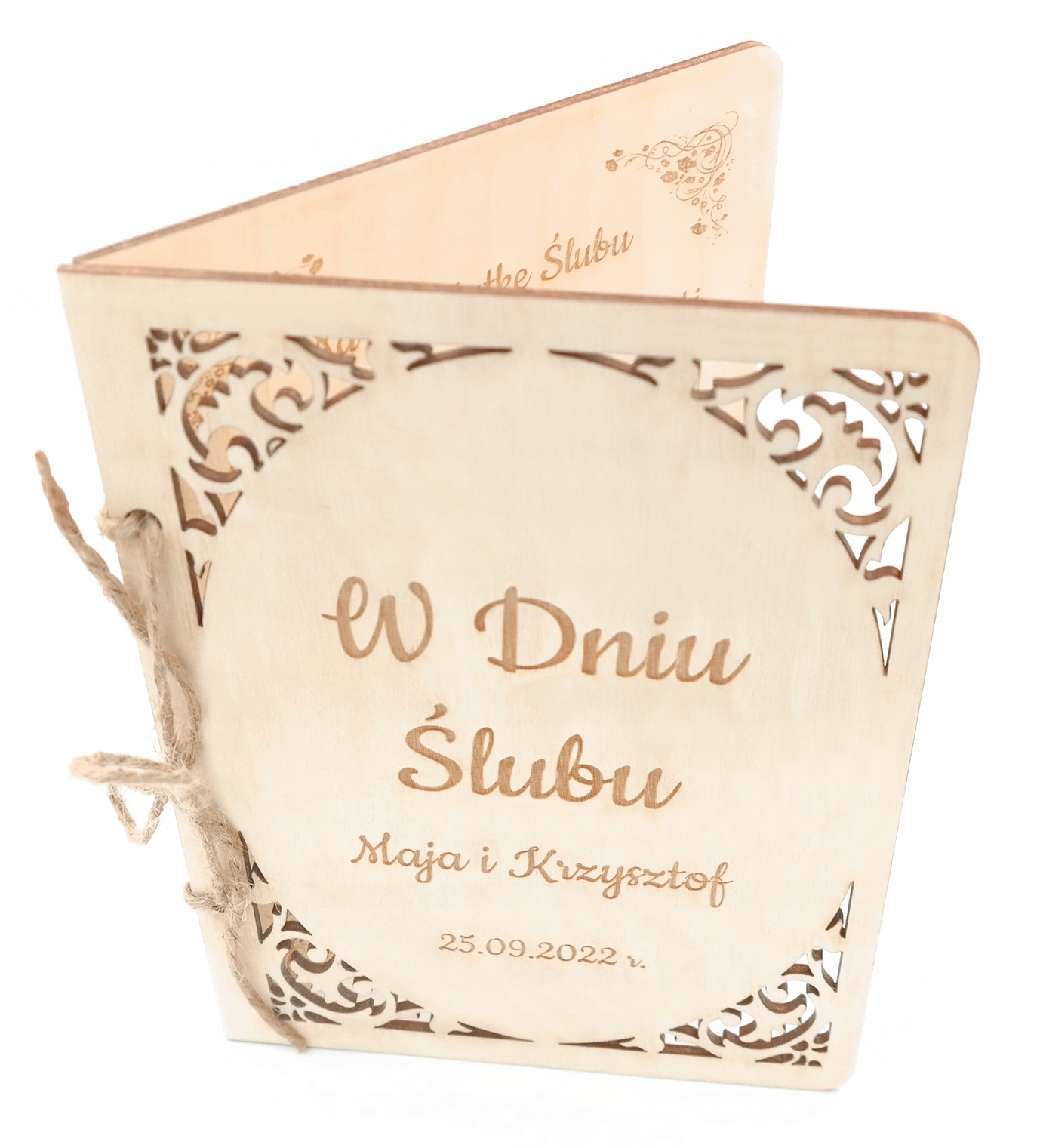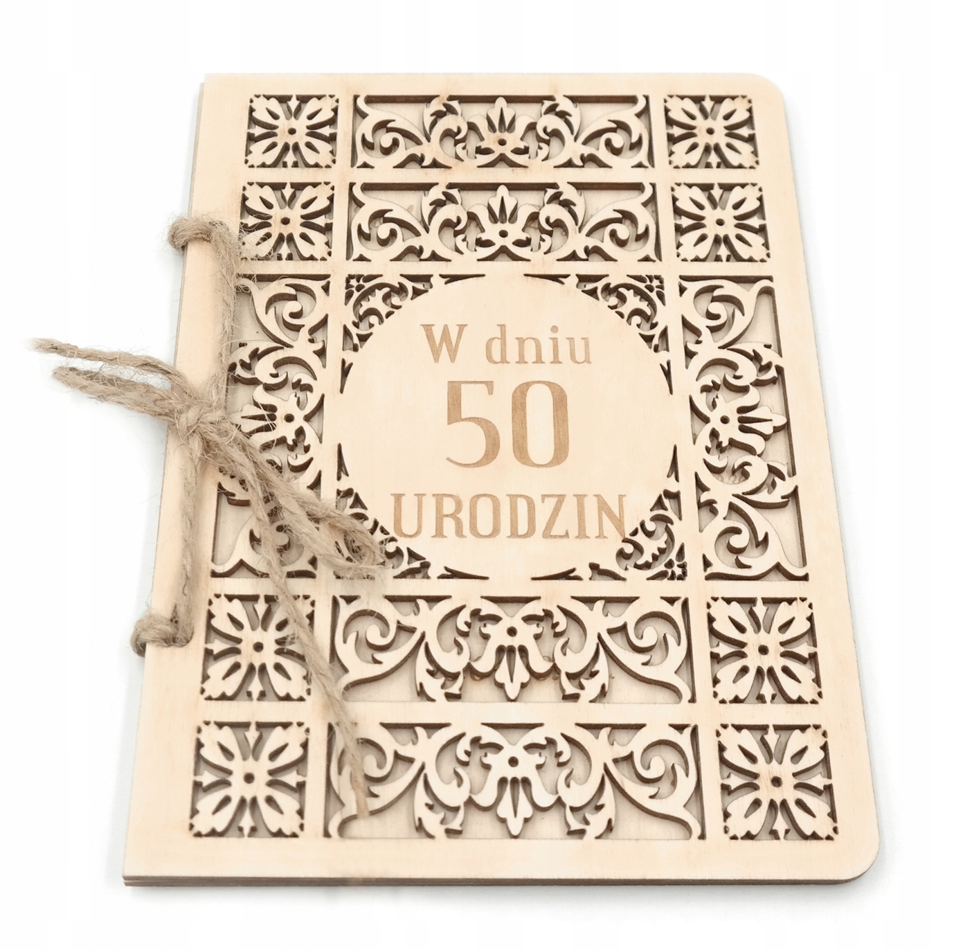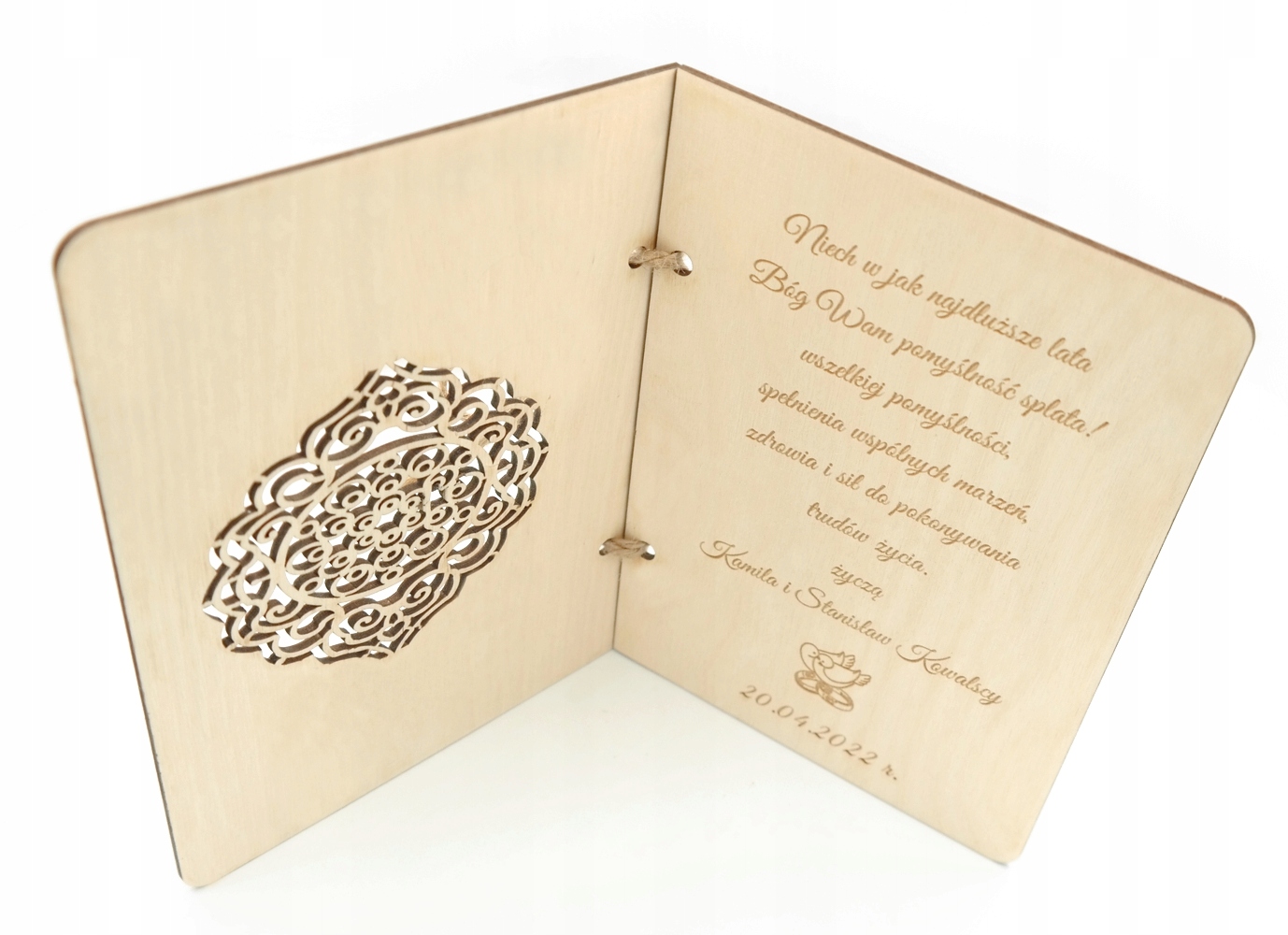 Елегантна дерев'яна весільна листівка на 50-ту річницю весілля з вигравіруваними побажаннями