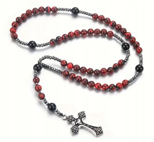 - з масивних червоних намистин, що імітують натуральний камінь, бл. 8 мм та великі - чорний агат 10 мм (на кожному десятку),