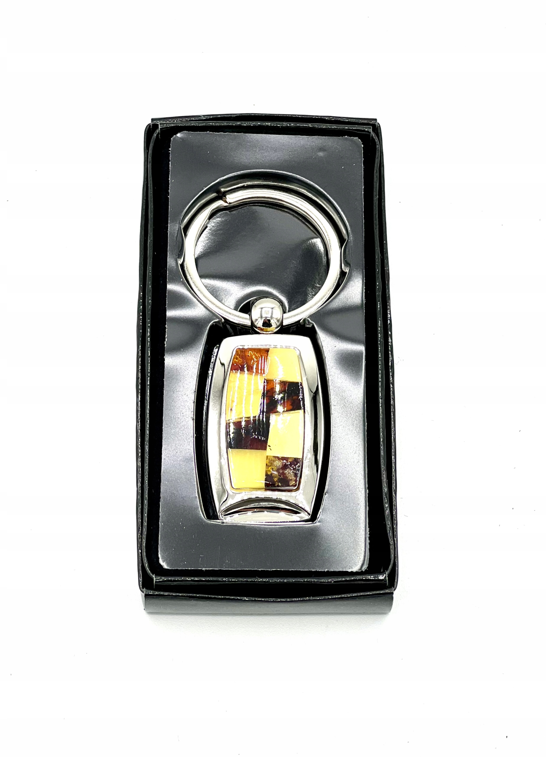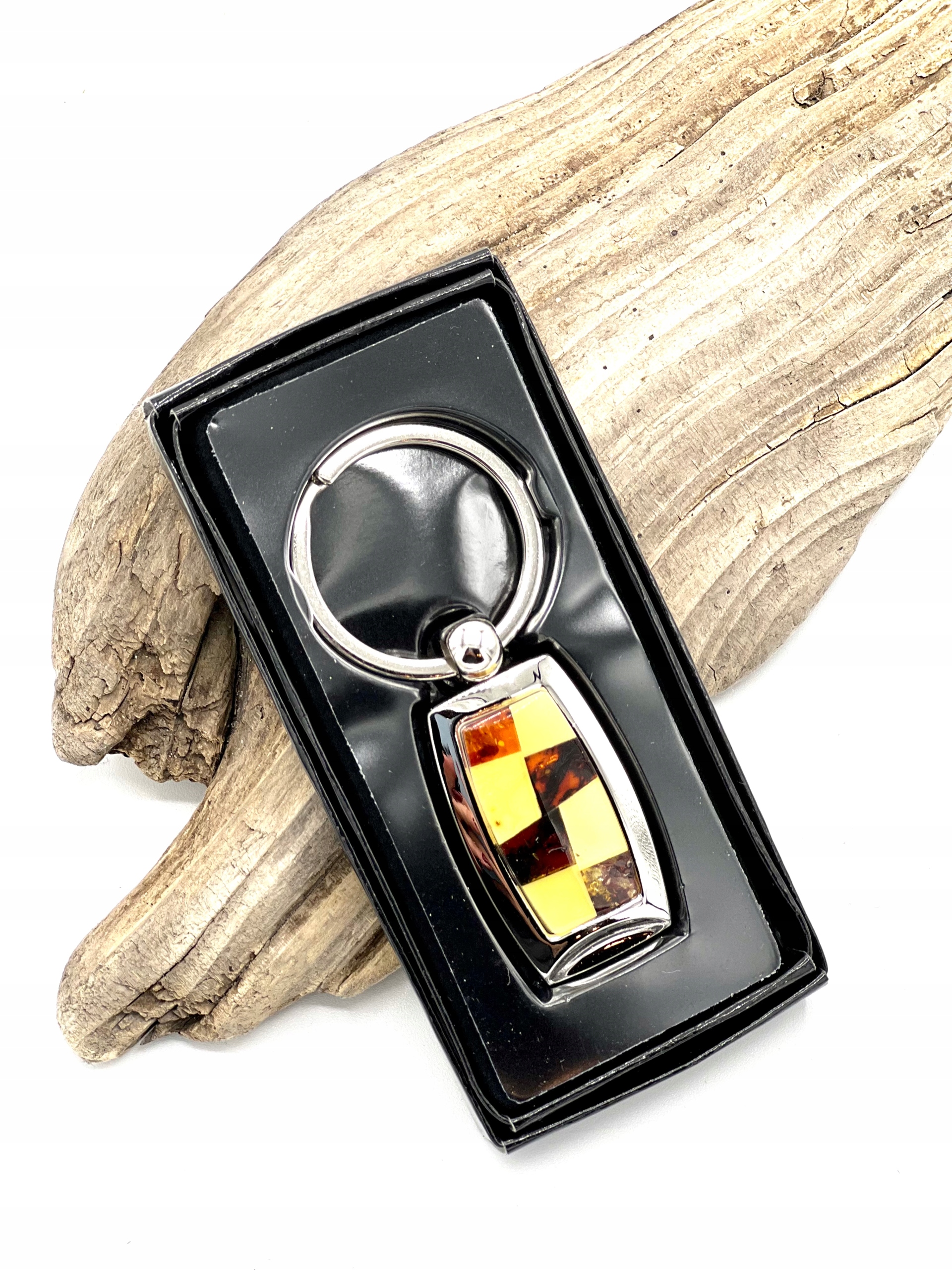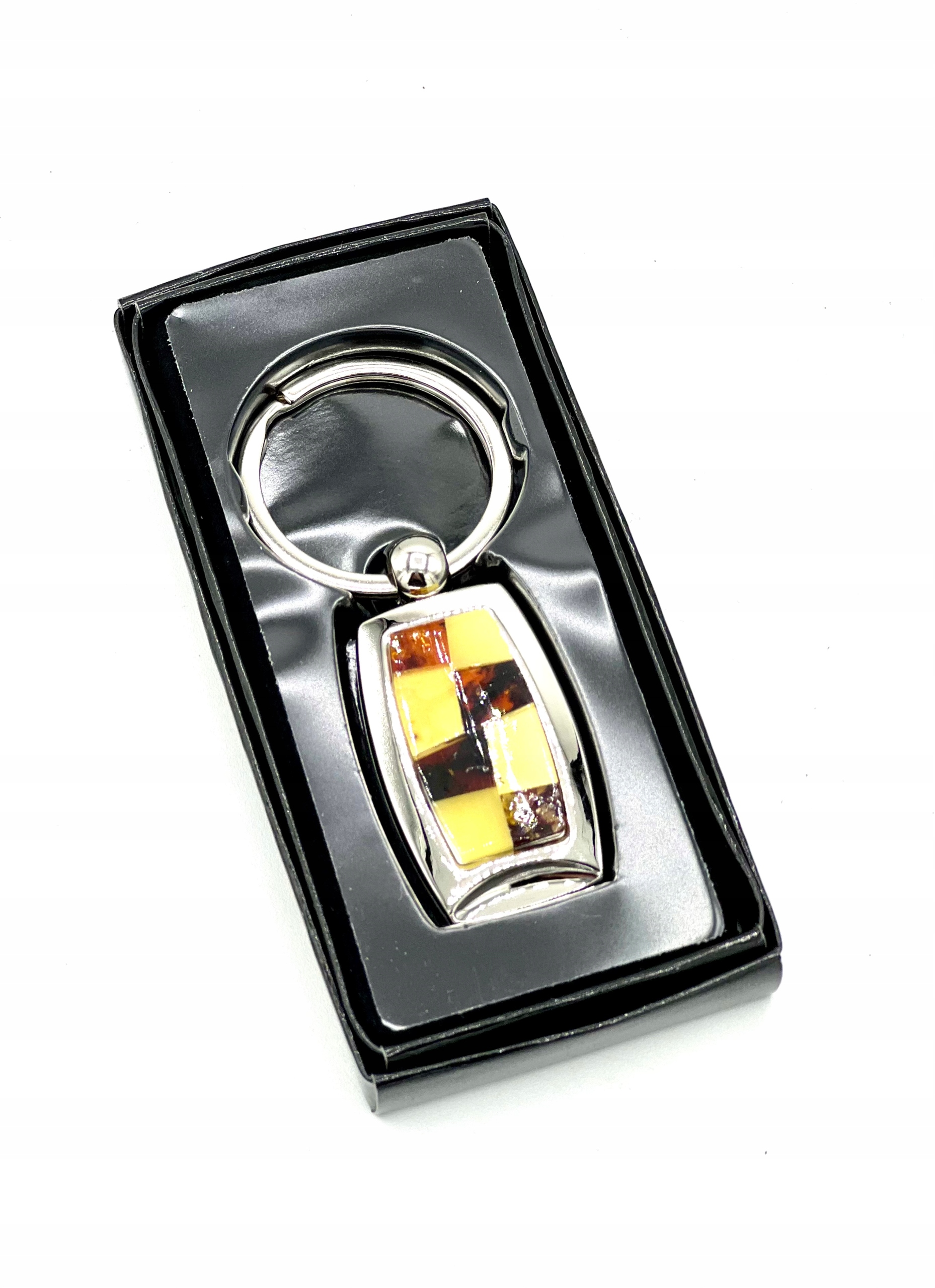 Брелок з бурштиновою мозаїкою з маленьких шматочків балтійського бурштину різних кольорів.