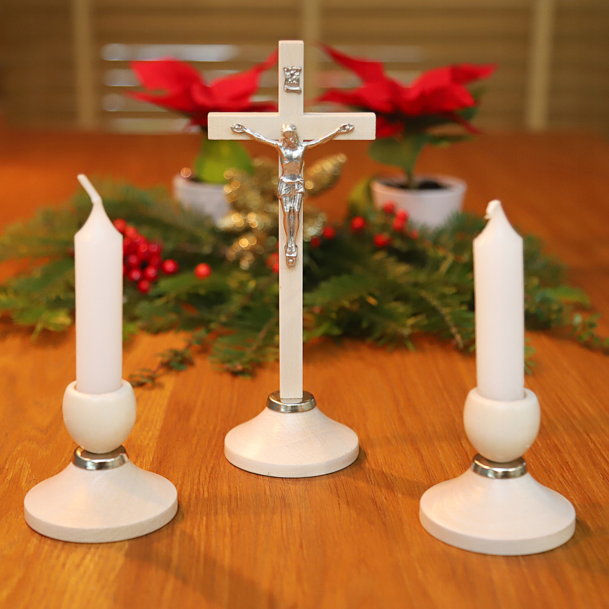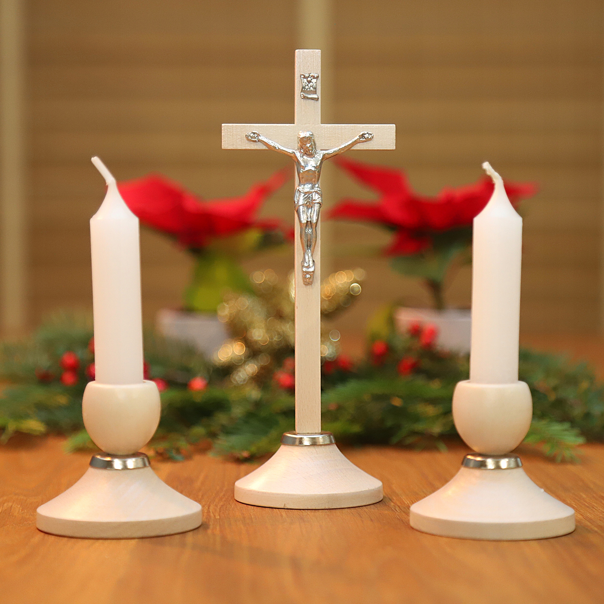 - Високі матеріали: Хрести та свічки виготовлені з міцної, ретельно відібраної деревини у легкому відтінку, що забезпечує надійність та естетичну зовнішність.