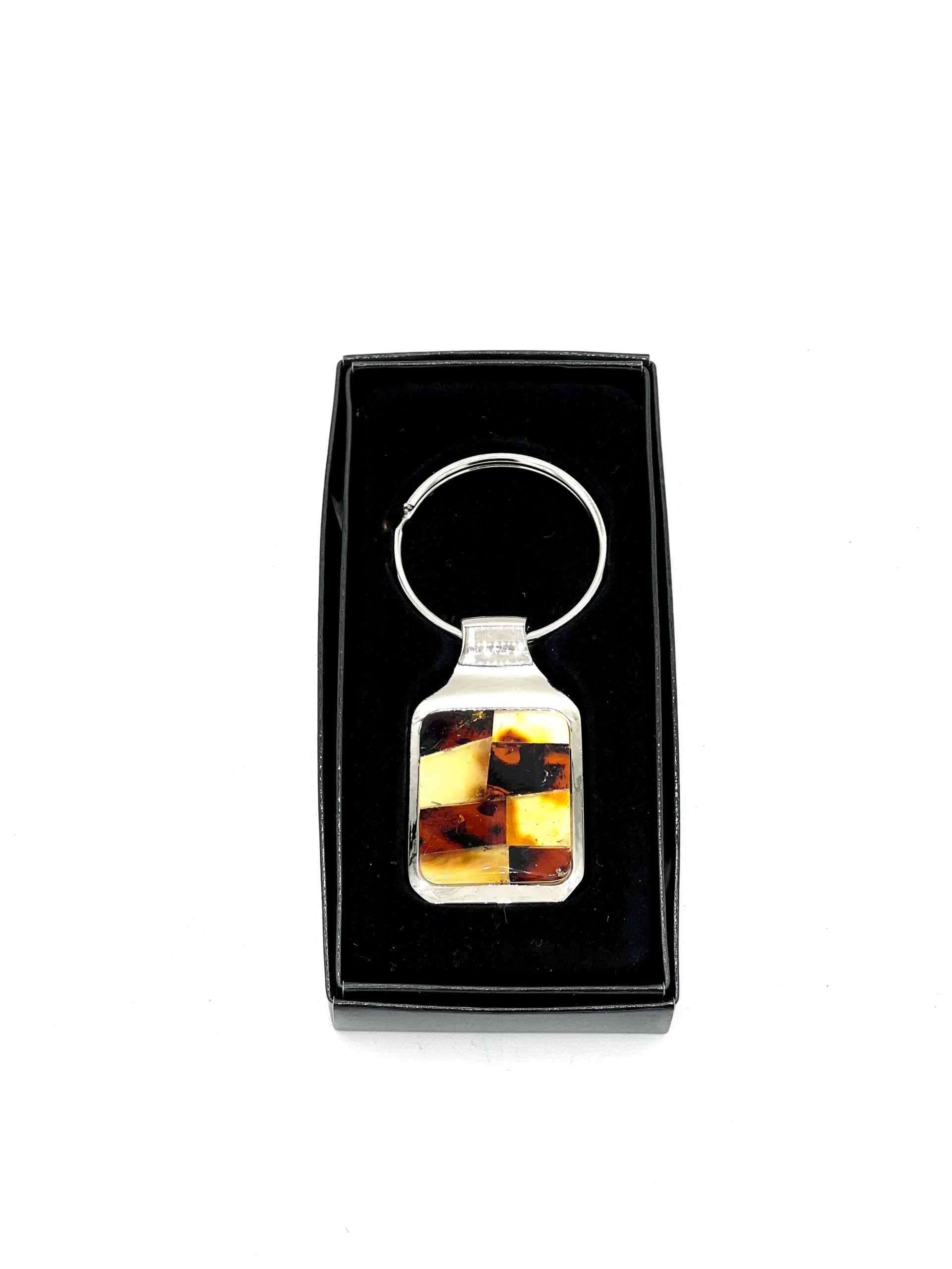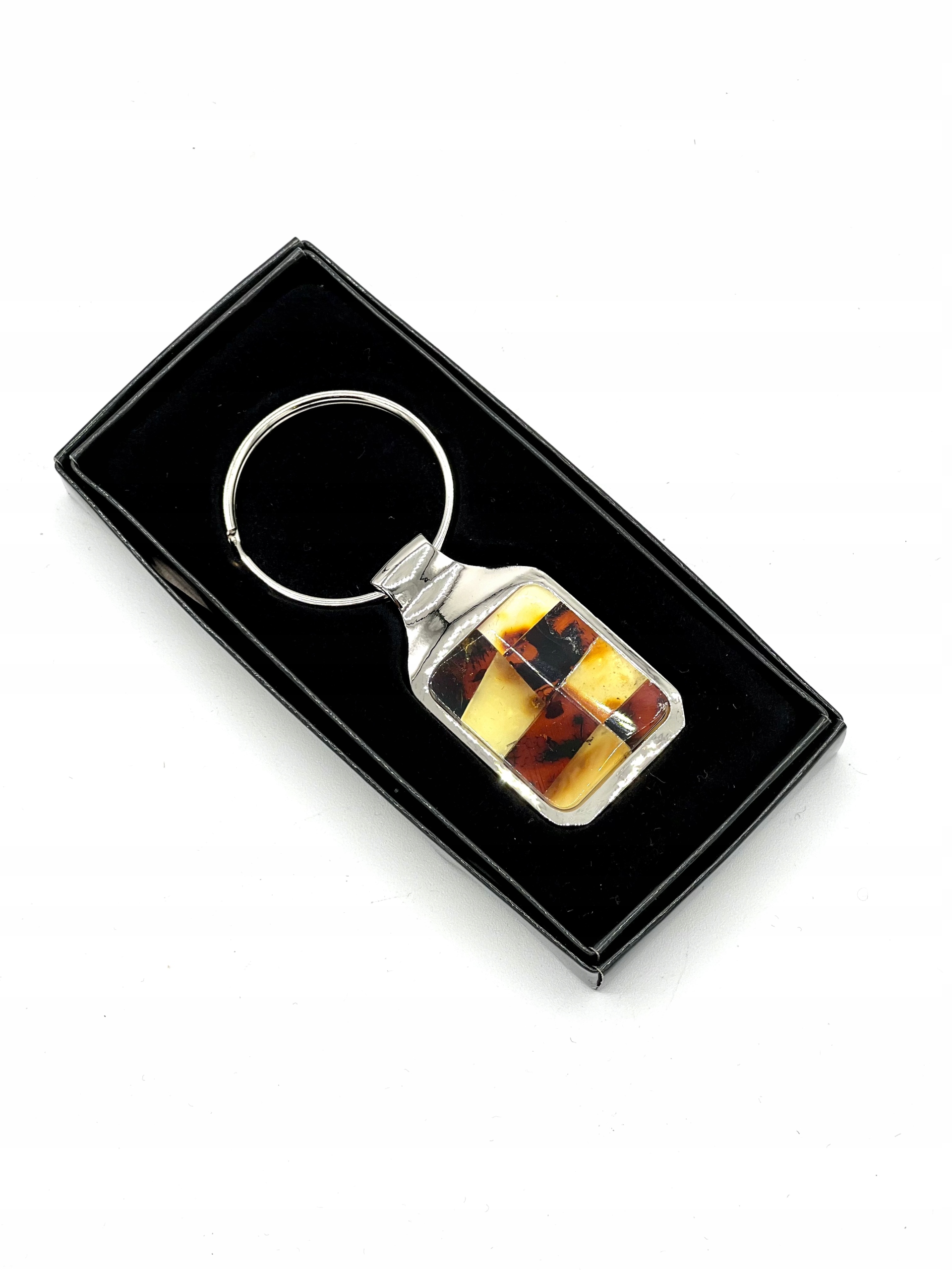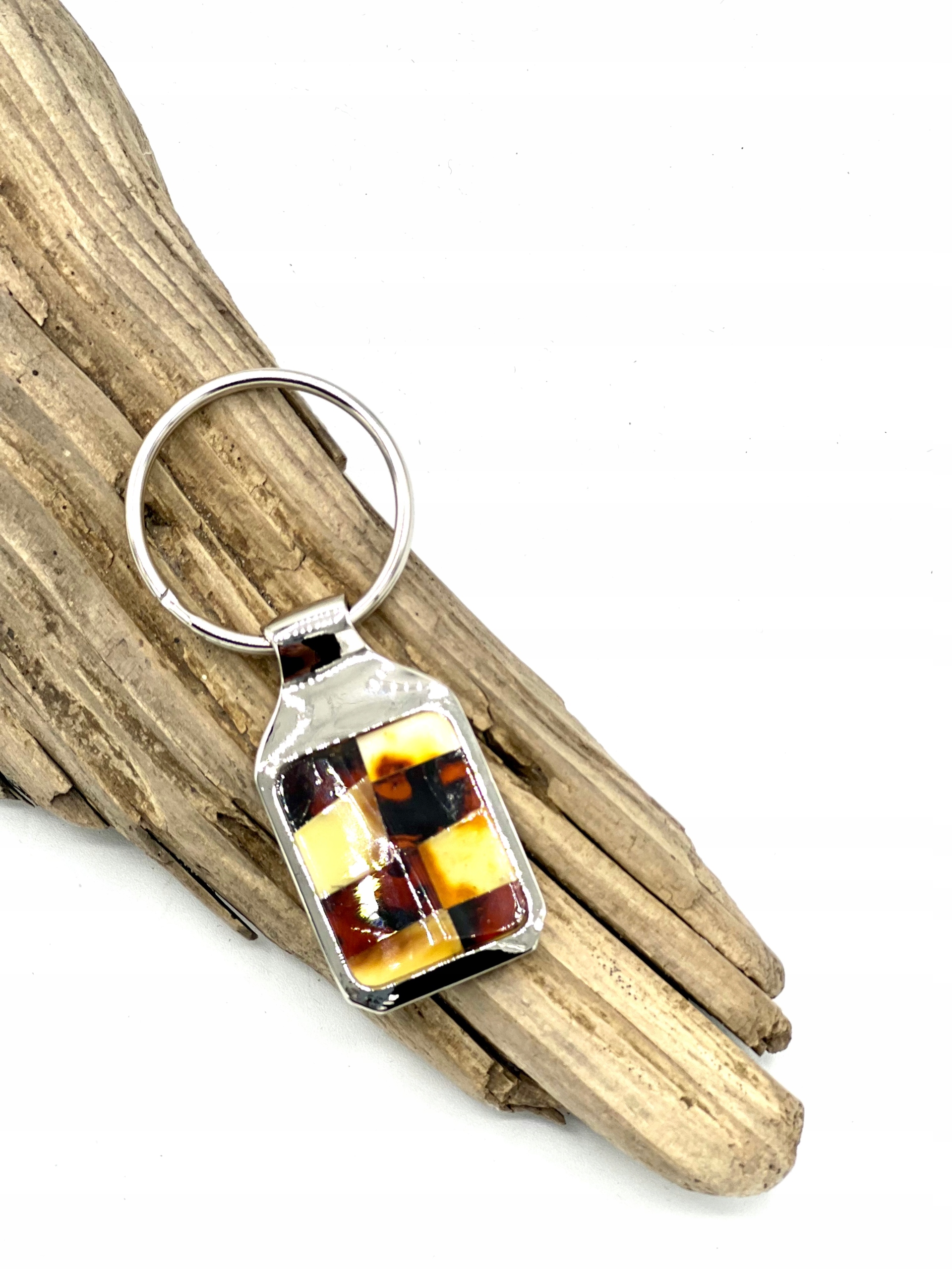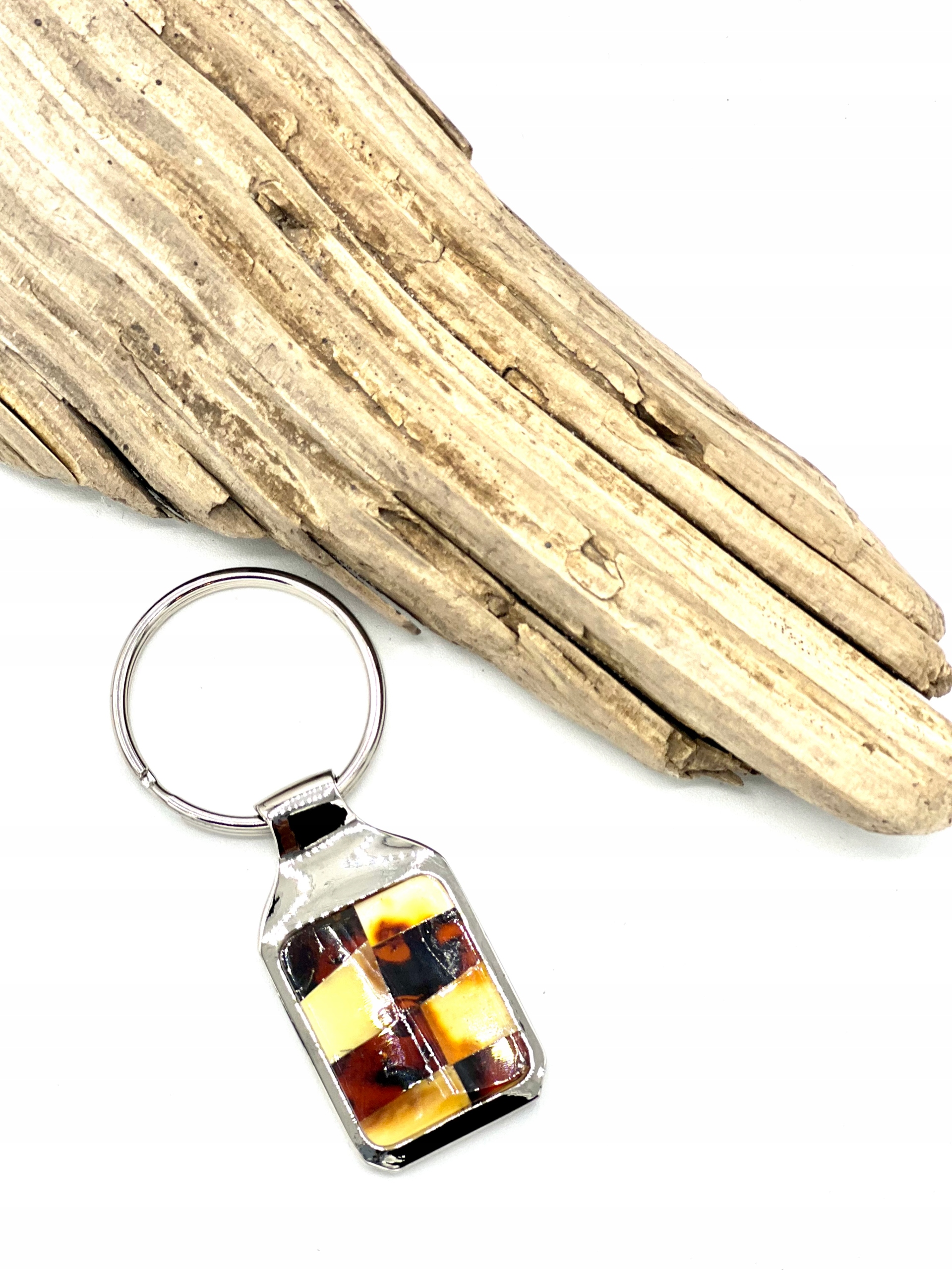 Брелок з бурштиновою мозаїкою з маленьких шматочків балтійського бурштину різних кольорів.