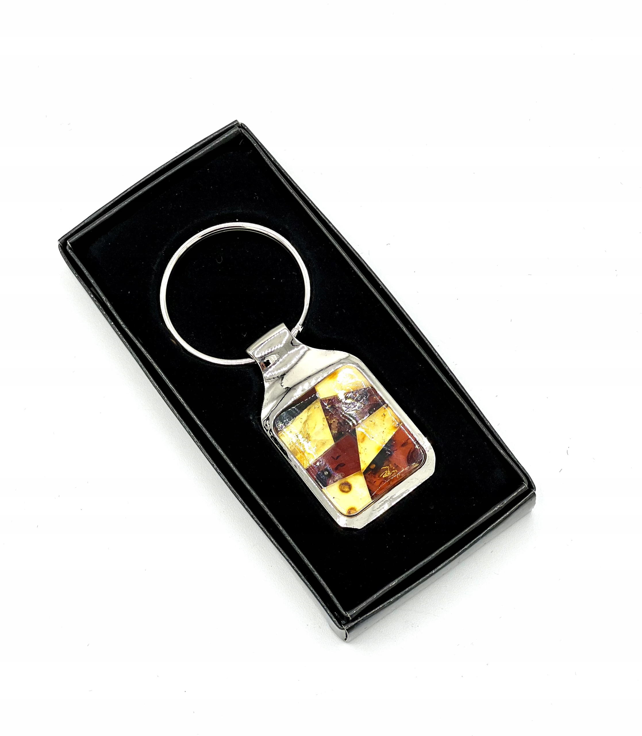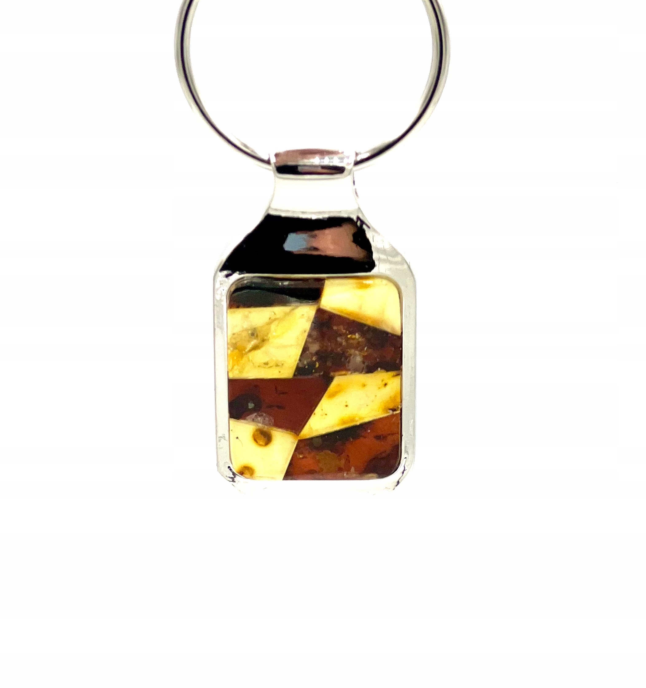 Брелок з бурштиновою мозаїкою з маленьких шматочків балтійського бурштину різних кольорів.