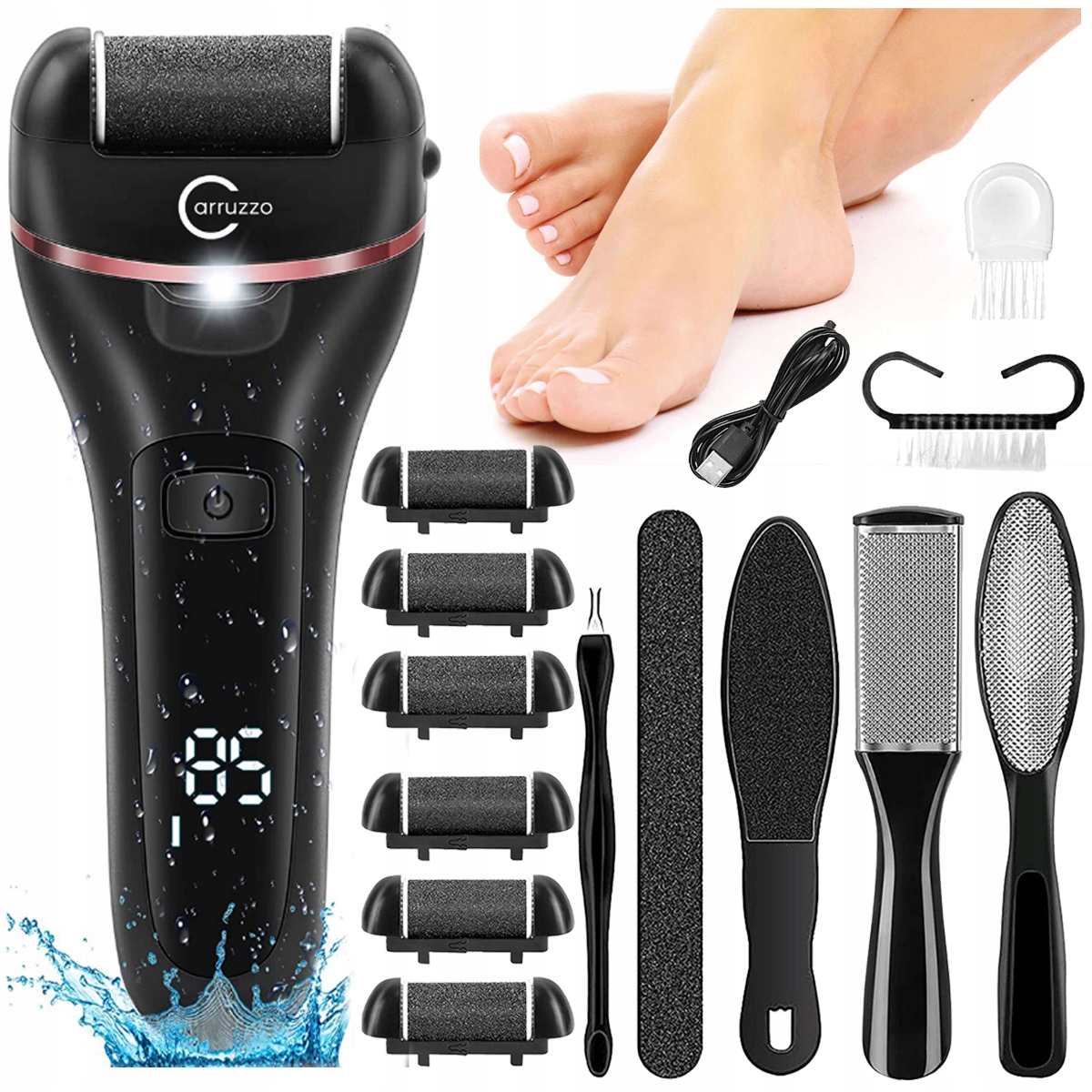 Повний набір для догляду за ногами, який забезпечує комфорт, ефективність і безпеку. Завдяки різноманітним аксесуарам і можливостям регулювання дозволяє точно адаптуватись до індивідуальних потреб. Цей продукт є ідеальним засобом для всіх, хто хоче зберегти свої ноги здоровими, гладкими та красивими.