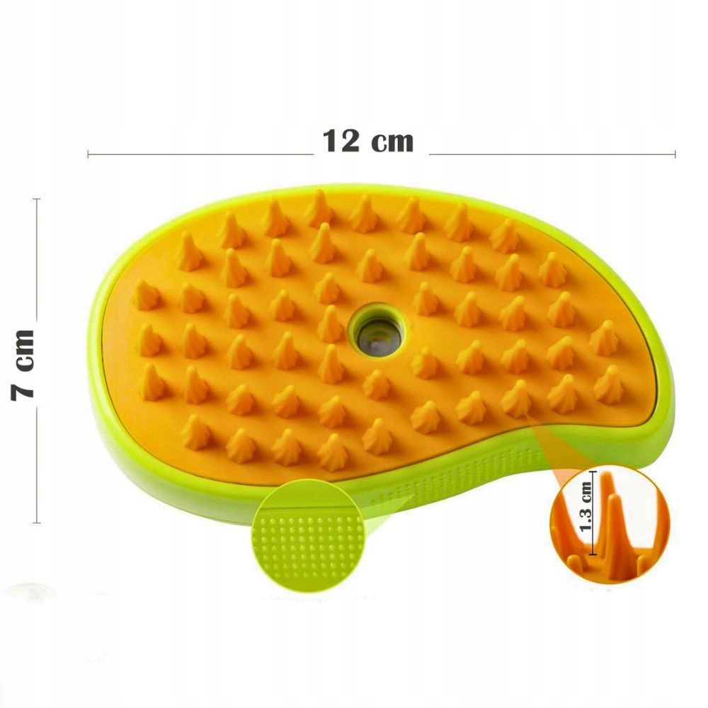 Щітка оснащена силіконовими виступами, які забезпечують додатковий комфорт під час догляду. Їхня гнучкість дозволяє м’яко, але ефективно видаляти бруд і відмерлу шерсть, не подразнюючи шкіру тварини.