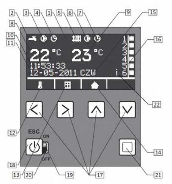 12. Сигналізація - Центральне налаштування температури нагріву і гаряча вода. Сигналізація контролю погоди