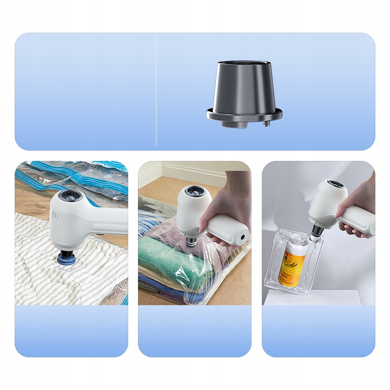 - Всмоктуюча насадка: ефективно забирає повітря з вакуумних пакетів, самоклеючих пакетів тощо;