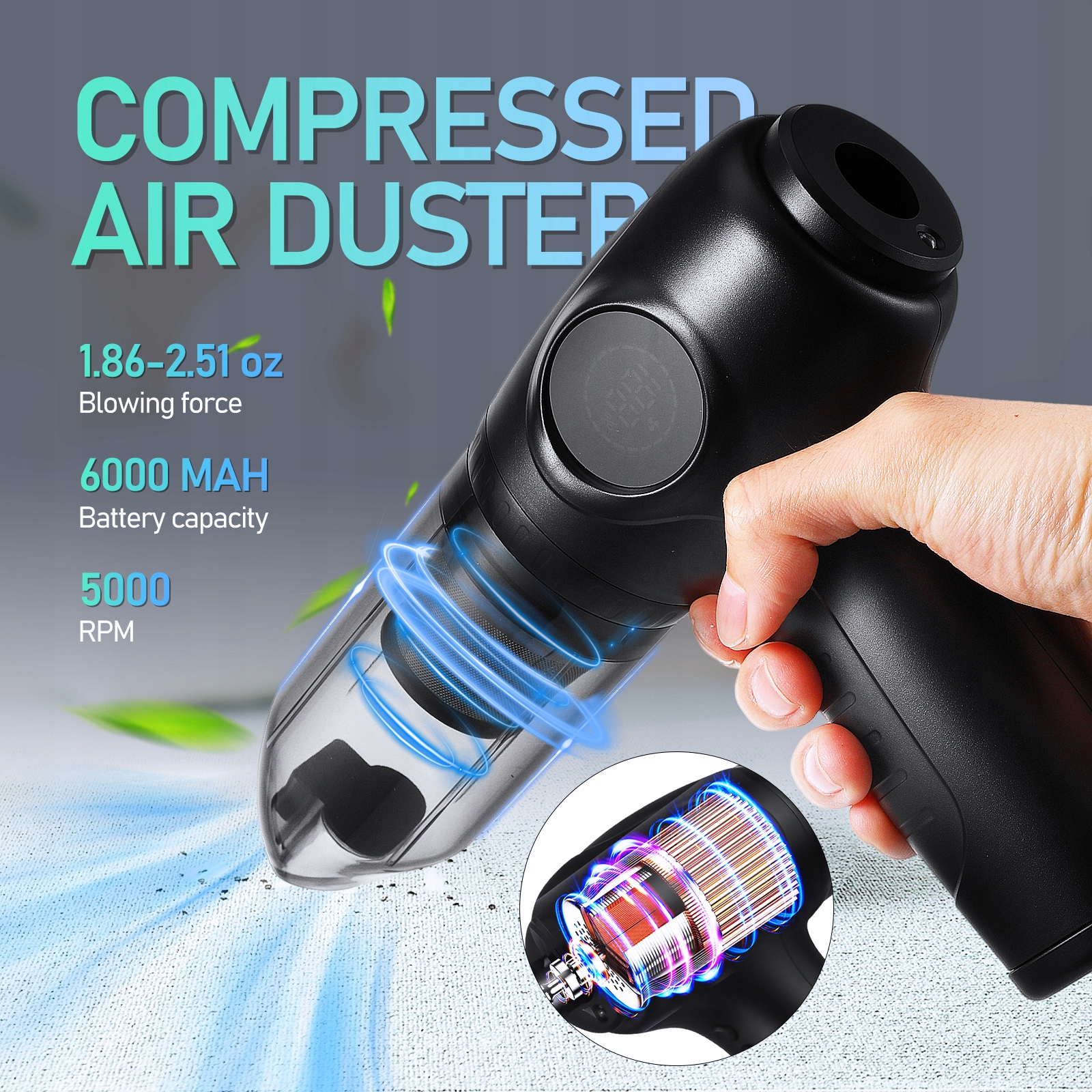 - Легка, компактна та бездротова конструкція робить її гарним вибором для глибокого очищення дому, офісу та електронних пристроїв, дозволяючи видувати або пилососити пил та бруд будь-коли та будь-де!