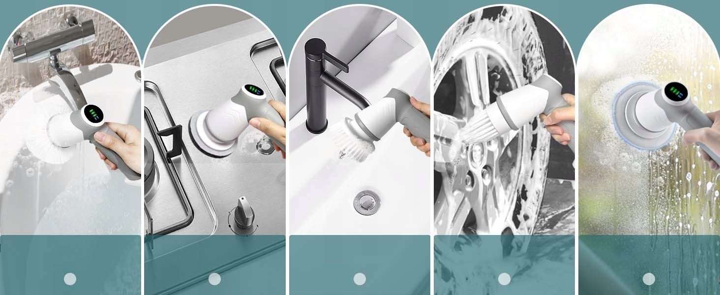 - Наш бездротовий пристрій щітка для чищення , легка конструкція з можливістю перезаряджання забезпечує потужність очищення там, де вона вам потрібна, тож ви можете попрощатися з втомленими руками та громіздкими скребками для рук.