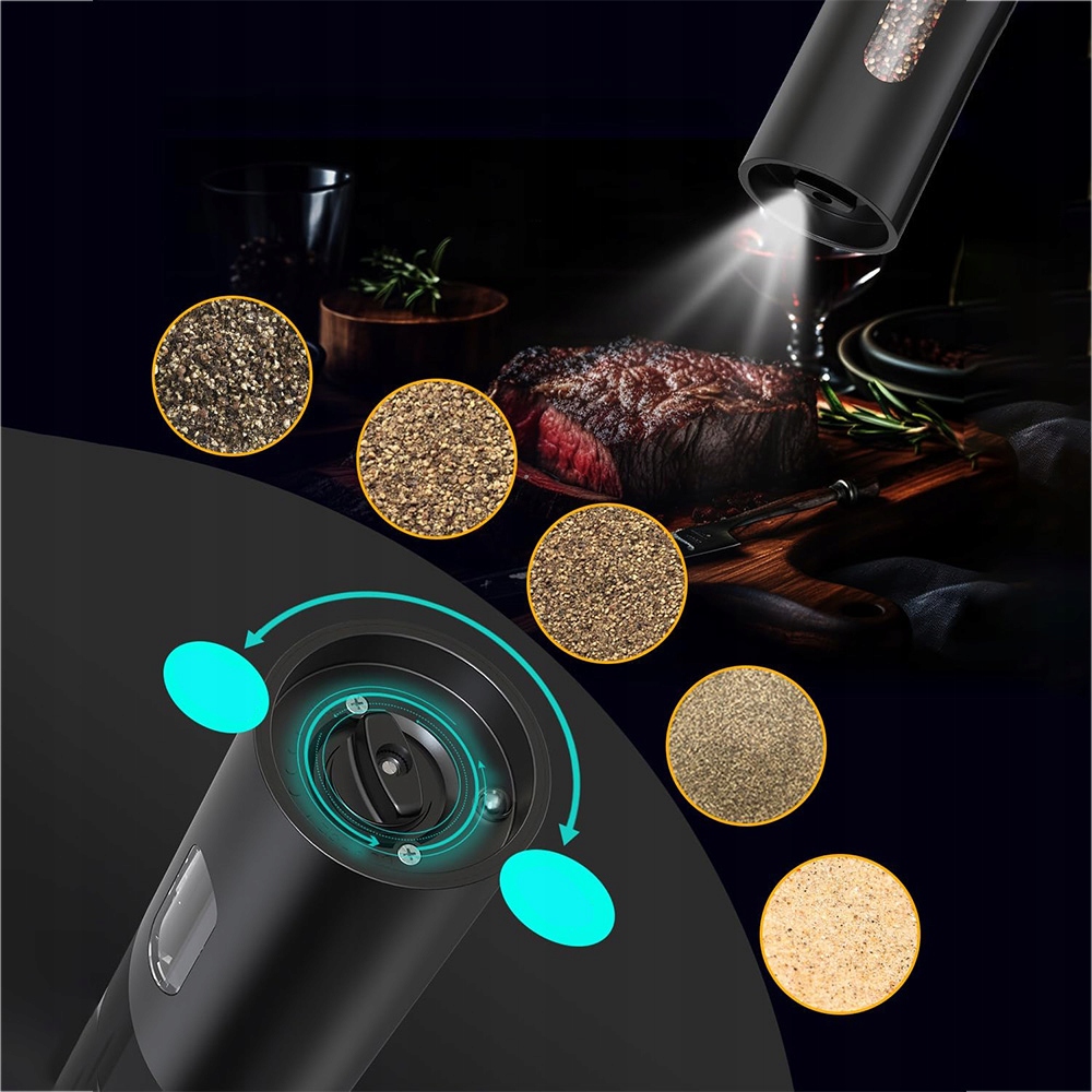 🧂 🧂 Створена товщина - відрегулюйте шліфування 5 точними налаштуваннями, від товстого маринаду до стейків до супу преміум -класу. Ручка обертової 360 ° на дні забезпечує легке управління текстурою - ідеально підходить для різних рецептів. Покращена, більша ємність - зараз 110 мл (3,38 унції) - на 30% більше, ніж стандартна модель 70 мл - ця шліфувальна машина може вмістити більше спецій і вимагає менших комплементів. Побудований -в світлодіодному світлі вмикається під час шліфування, що дозволяє моніторинг прогресу в реальному часі