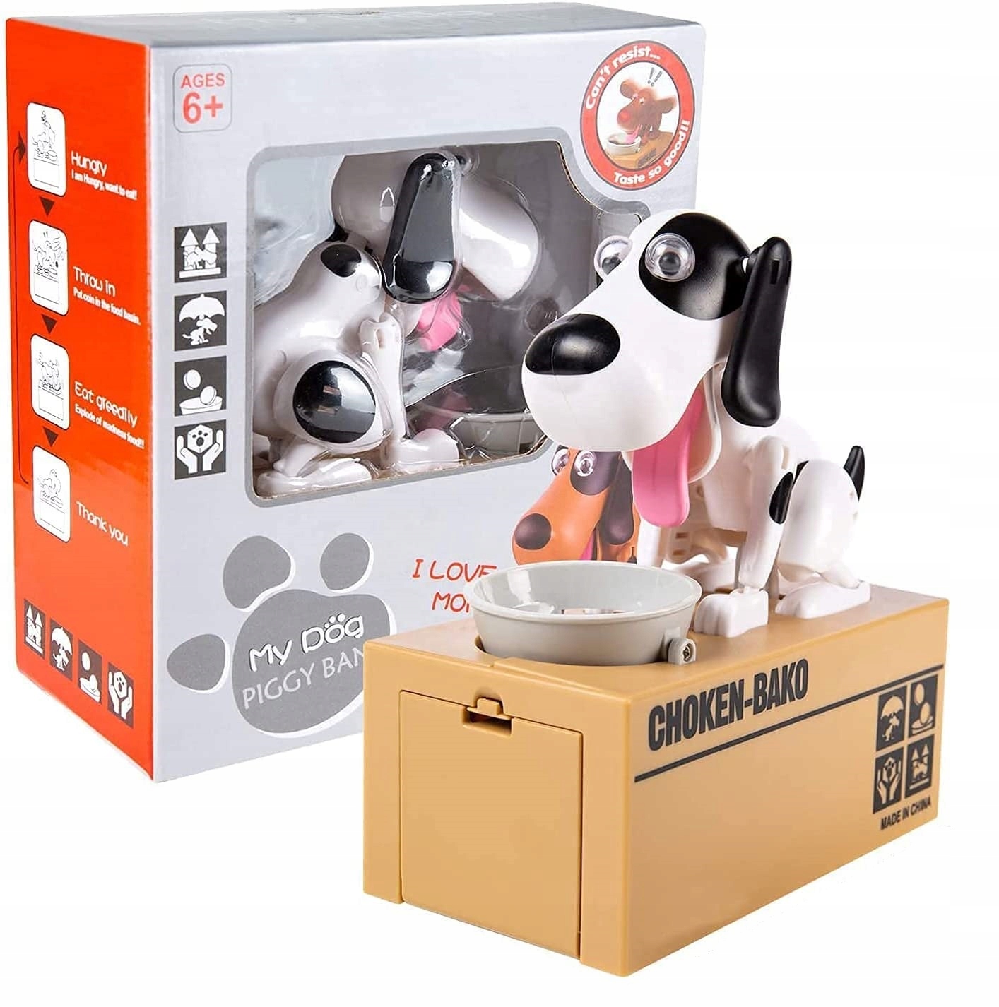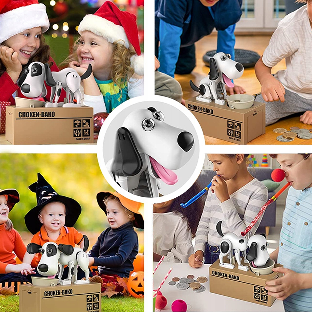 - 🐕🦺【Симпатичний дизайн】 Покладіть монети будь-якого розміру на викрадач монет, милий пес наполегливо працює, щоб вкрасти монети, покладіть монети у коробку , дуже цікаво та креативно.