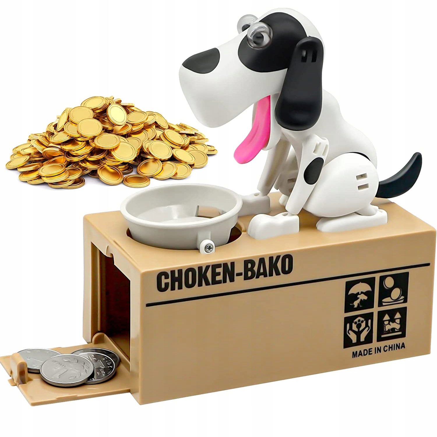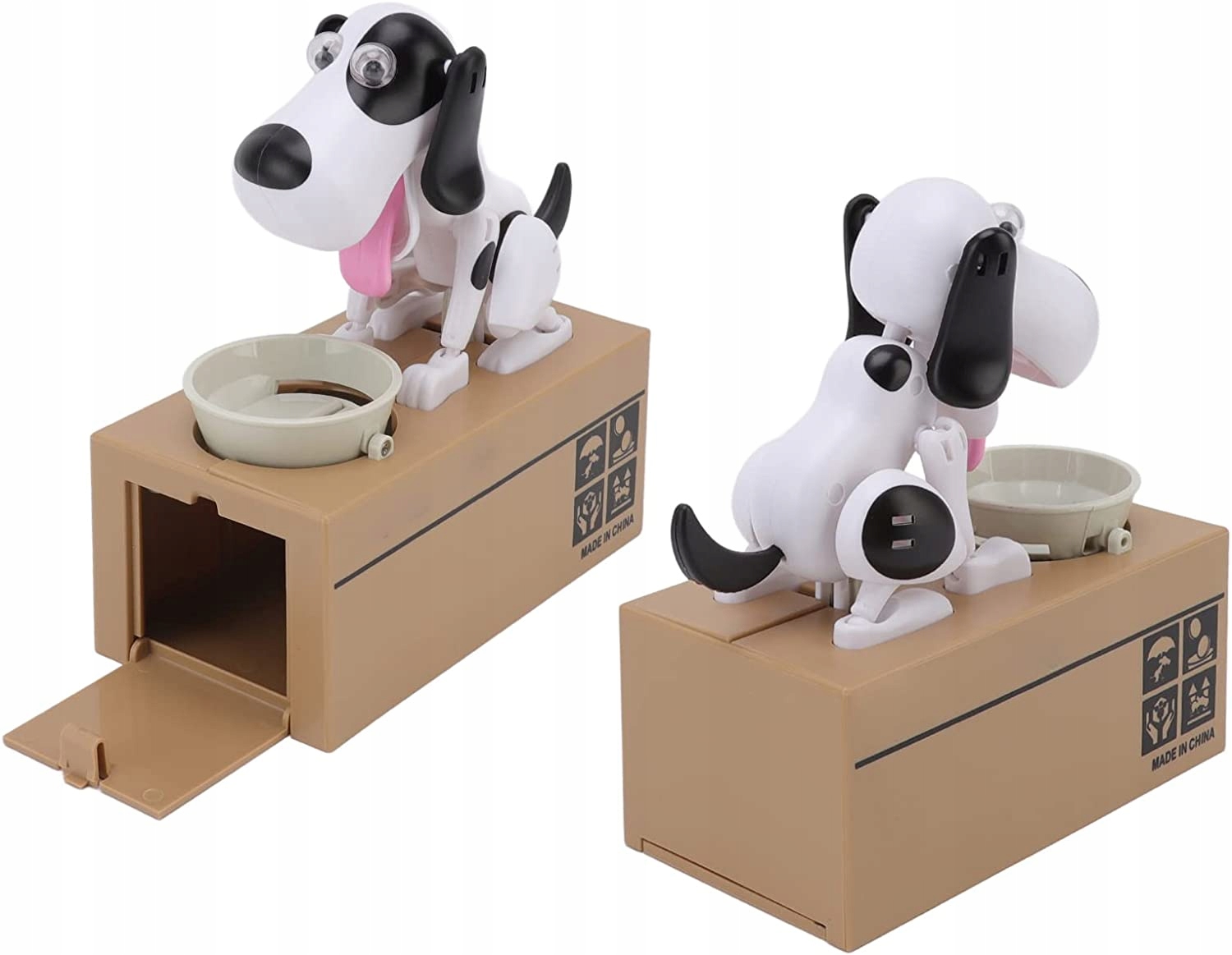 - 🐕🦺 【ВЕЛИКА ЄМНІСТЬ】 Собака може вмістити від 20 до 40 монет, перш ніж її потрібно спустошити. Унизу коробки є засув, який можна відкрити, щоб повернути всі збережені гроші!