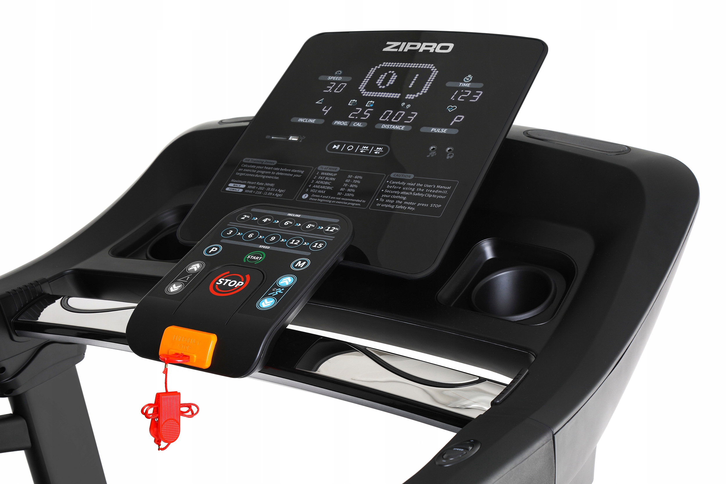 Бігова доріжка оснащена сучасним комп’ютером зі світлодіодним дисплеєм із блакитним підсвічуванням і 6 світлодіодними віконцями. Вони надають інформацію про швидкість, час, кут нахилу, обрану програму, витрачені калорії, відстань і частоту серцевих скорочень. Він також представляє легкоатлетичну доріжку в графічній формі та підраховує дистанції та пройдені кола.