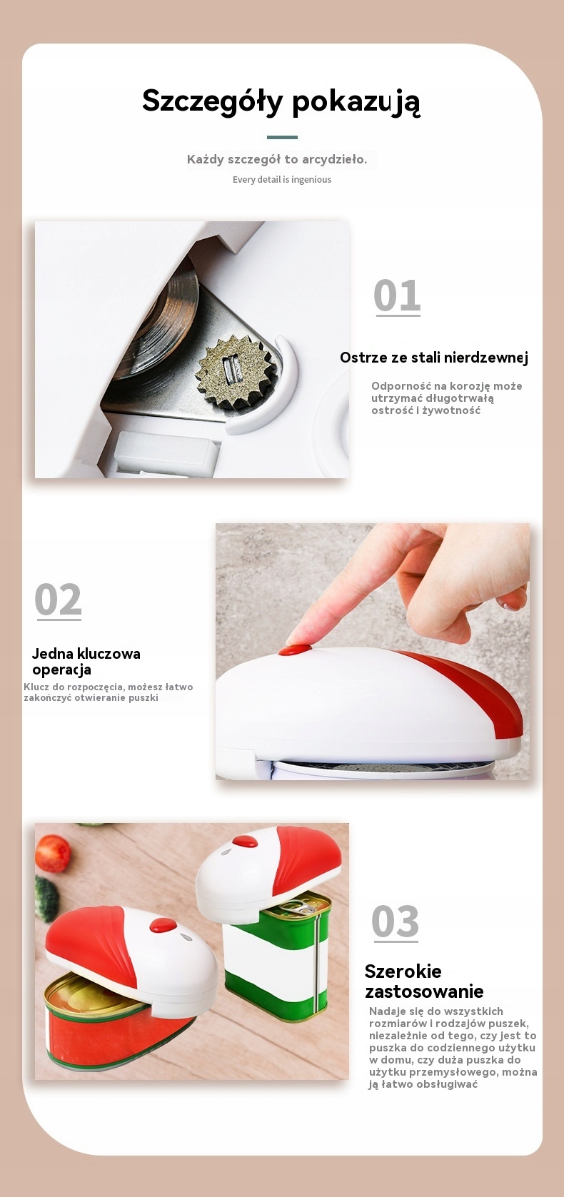 • Консервний нож: підходить для всіх видів банок і банок, з гострими лезами, плавним різанням і без задирок.