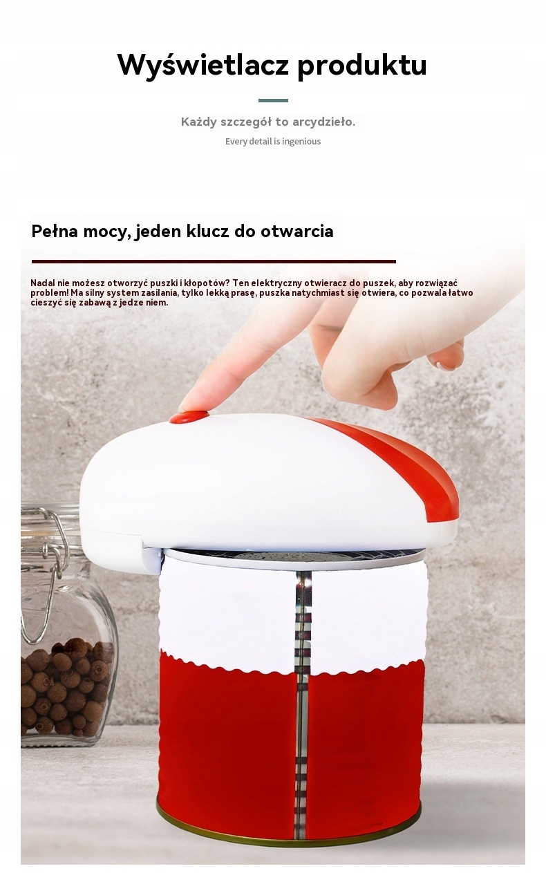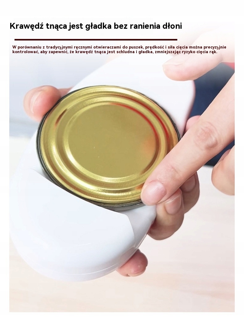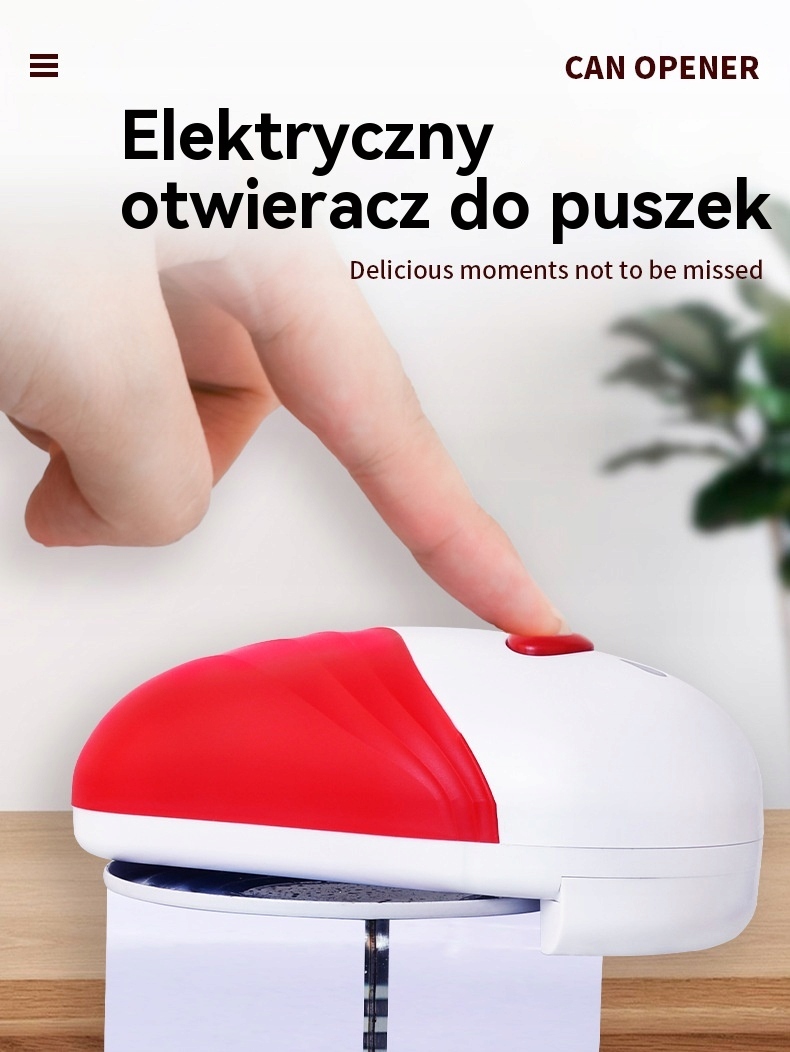 • Електричний консервний нож: просто покладіть консервний нож на верхню частину банки, натисніть кнопку, лезо повернеться автоматично, кришку банки легко розрізати, ручна операція не потрібна, заощаджуючи час і зусилля.