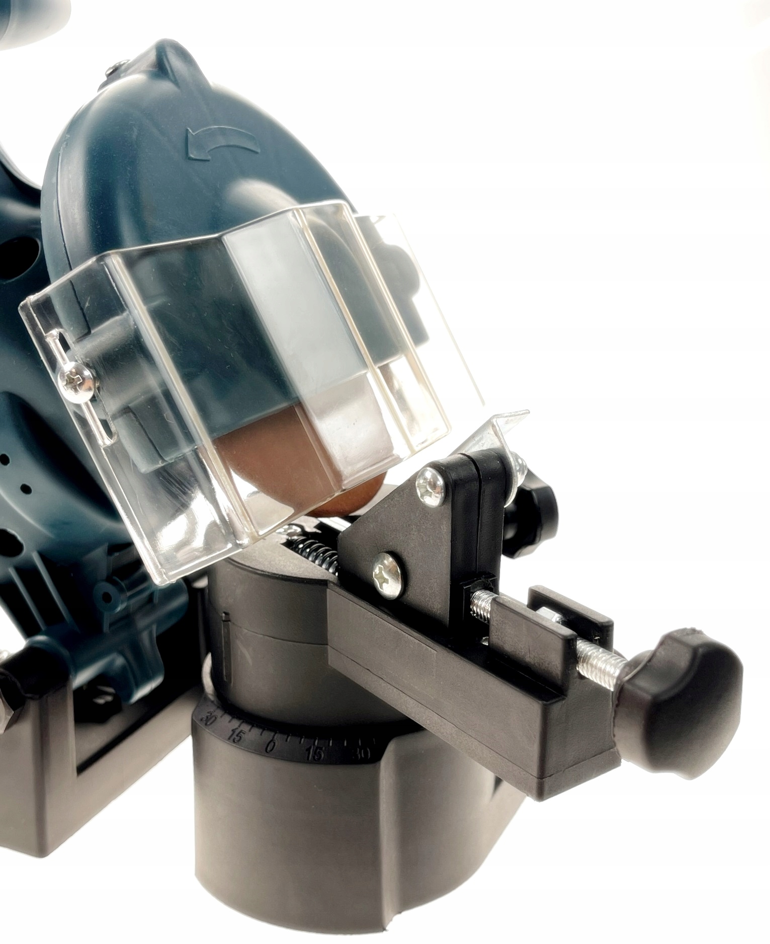 Точилка має обертові лещата з регульованим кутом заточування (кут обертання 35 градусів) і обмежувач глибини шліфування, що забезпечує дуже точне заточування.