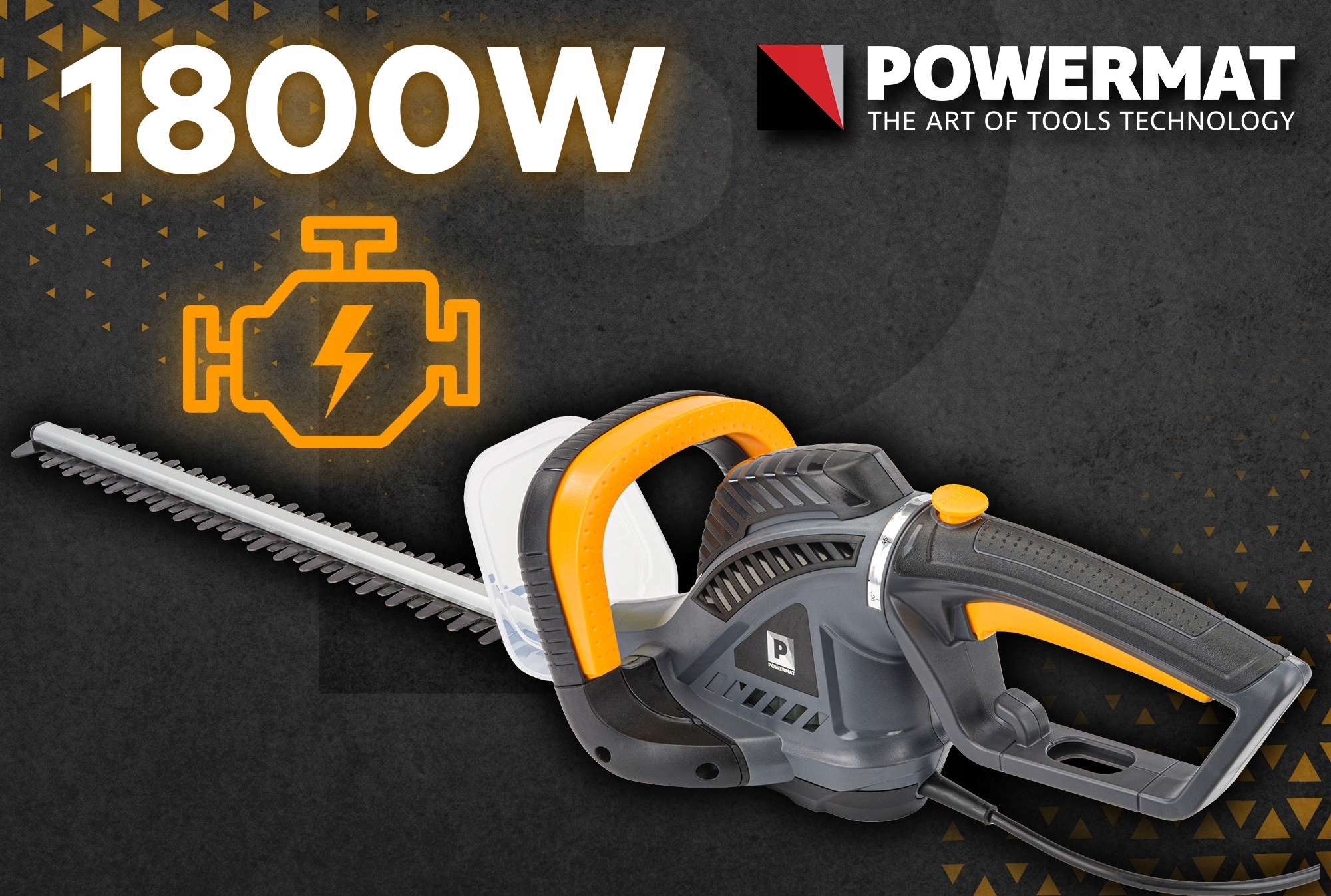 Електричні ножиці від POWERMAT PM-NE-1800M з високоякісним лезом з високовуглецевої сталі. Можливість швидко і легко регулювати кут нахилу ручки ножиць до 5 градусів значно полегшує обрізку кущів. Ефективний електродвигун потужністю 1800 Вт дозволяє зрізати товсті гілки з максимальною шириною зрізу приблизно 20 мм.