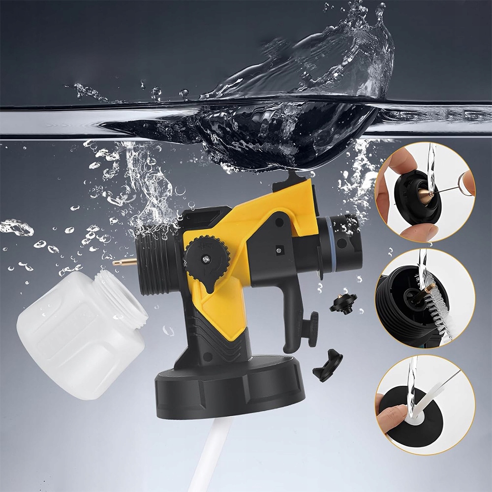 - оснащені 4 різними розмірами латунних форсунок (0,8 мм, 1 мм, 1,8 мм, 2,5 мм), 3 розпилювальні візерунки (горизонтальний, Вертикальна, кругова), ручка регулювання потоку, щоб отримати різні ефекти розпилення. Розпилення та забезпечує рівний і незначний спрей. Контейнер потужністю 1400 мл забезпечує велику потужність розпилення. Включає кисть для чищення та голку для полегшення очищення. - Підходить для різних проектів самостійно, його можна використовувати для фарбування стелі, огорож, дверей, вікон, меблів тощо