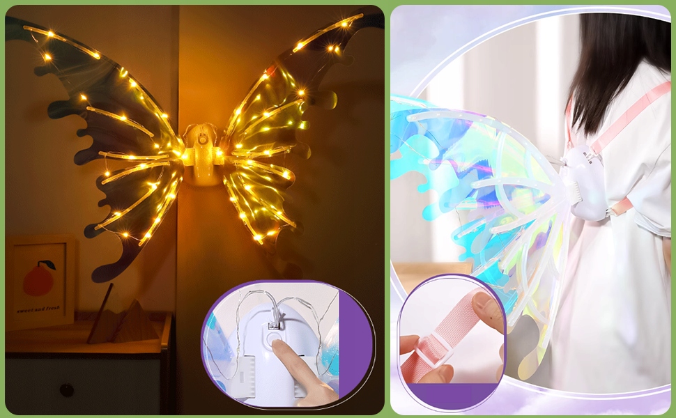 🧚♀️Він прикрашений красивими світлодіодними лампочками та крилами метелика, які без зусиль тріпотять, перетворюючи вас на чарівну істоту.