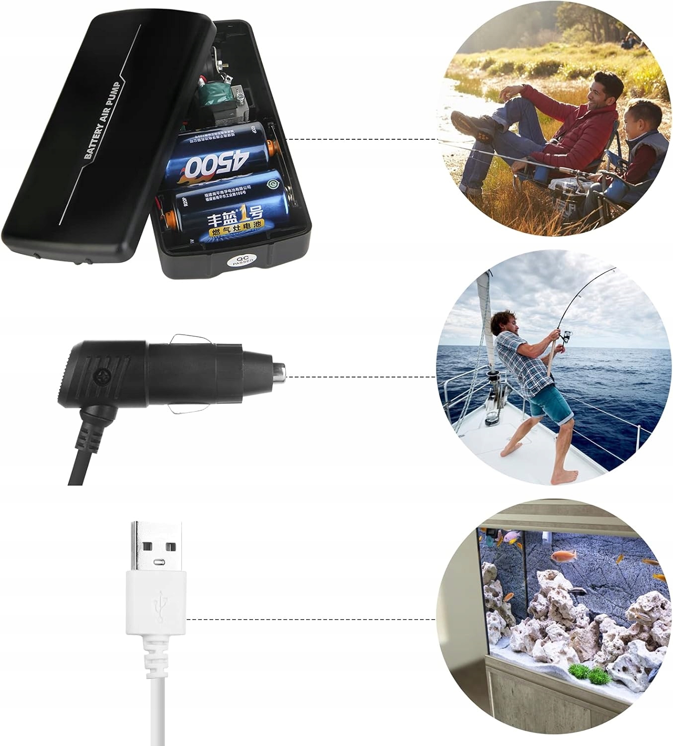 № 17-сяючий повітряний насос для акваріума, що працює від USB / акумулятора / автомобільного зарядного пристрою