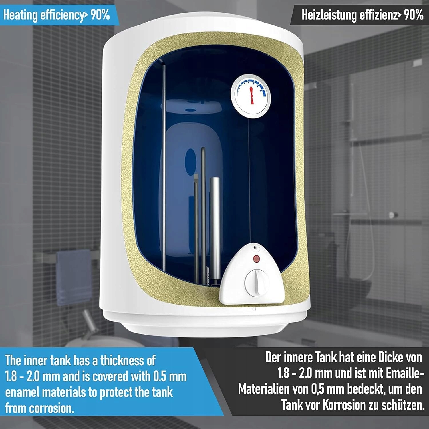 - 🛁 Великий Місткість: З ємністю 80 літрів наш бойлер ідеально підходить для повсякденного використання, гарантуючи гарячу воду для всієї родини.