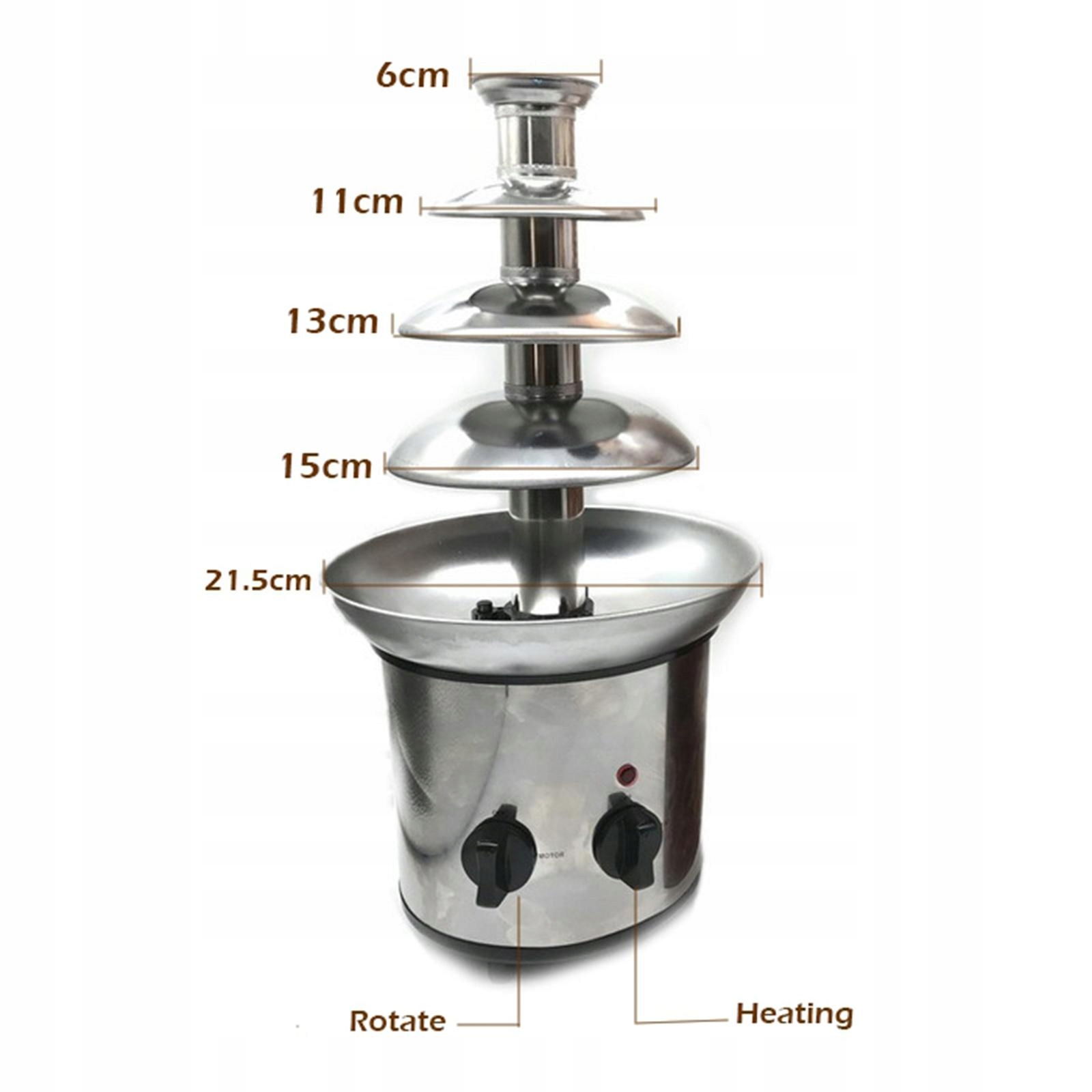 Матеріал: Міцний шоколадний фонтан виготовлено з високоякісної нержавіючої сталі 304 з двигуном і електронним компонентом.