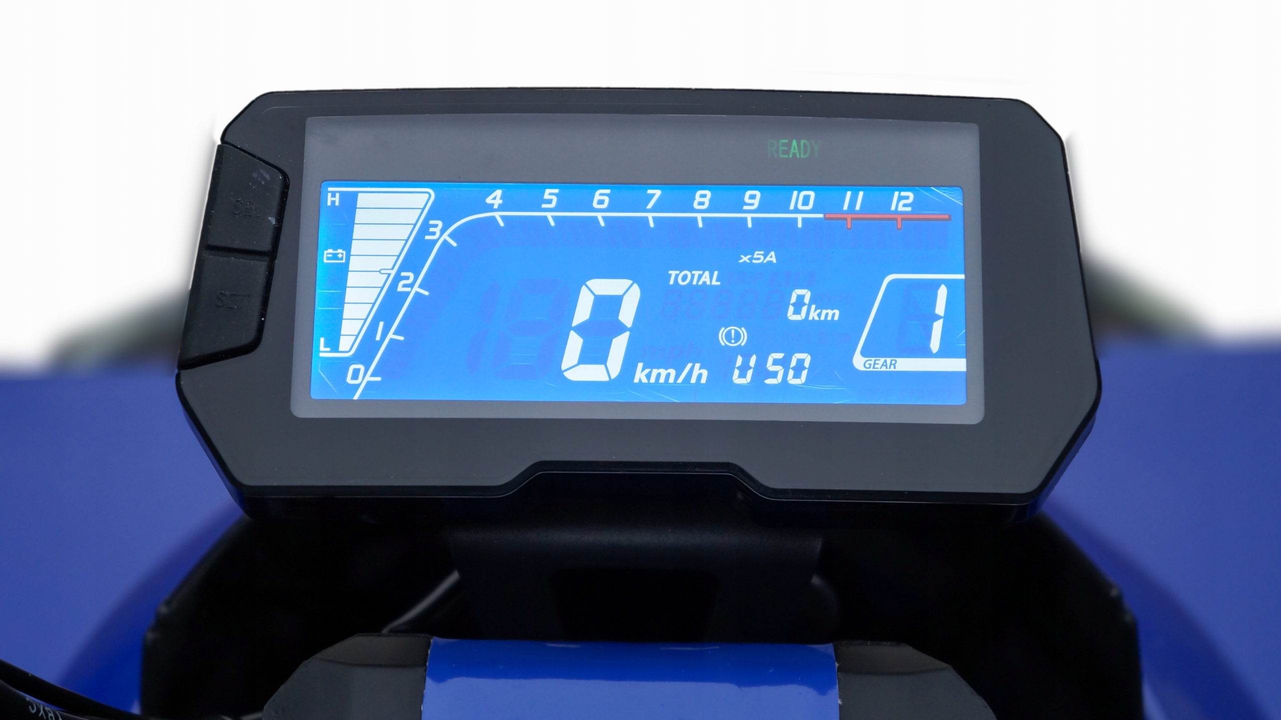 - Цифровий дисплей із лічильником швидкості, рівня заряду батареї, функцією поточної передачі