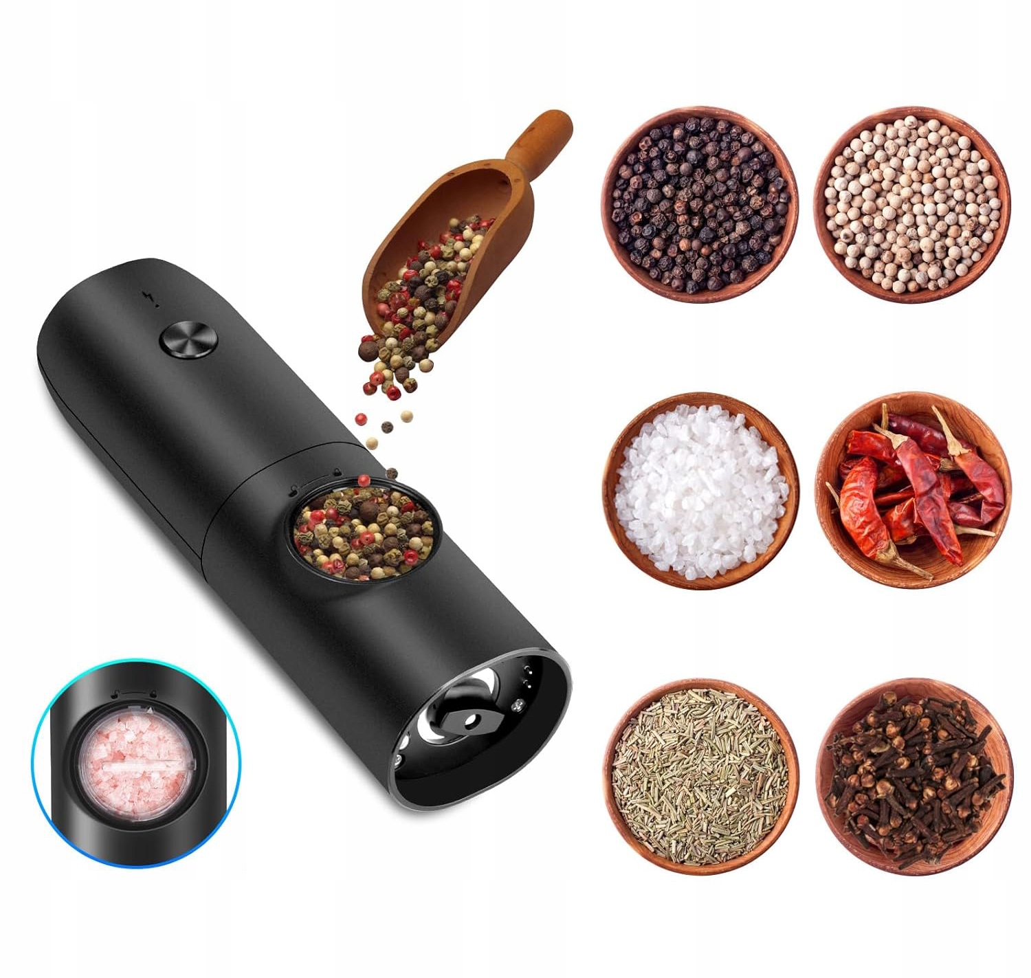 ЕЛЕКТРИЧНИЙ МЛИН ДЛЯ ПЕРЦЮ І СІЛІ, РЕГУЛЬОВАНИЙ, КОМПЛЕКТ 2 ШТ. З БАЗОЮ ЗАРЯДКИ