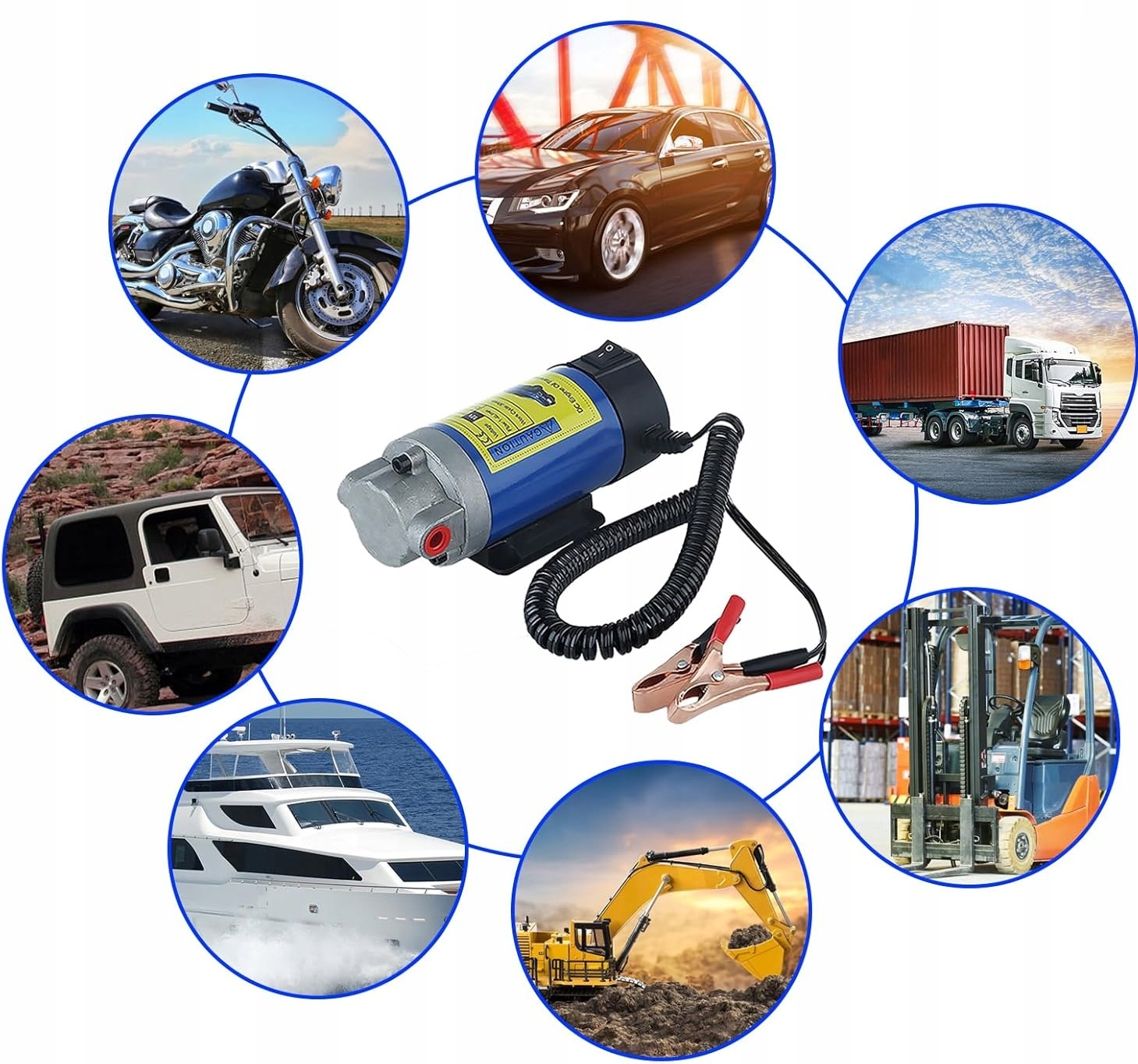 Насос вписується в пасажирські автомобілі, мотоцикли, вантажівки, човни, будівельні машини та навантажувачі. Універсальне рішення для багатьох видів транспортних засобів та обладнання