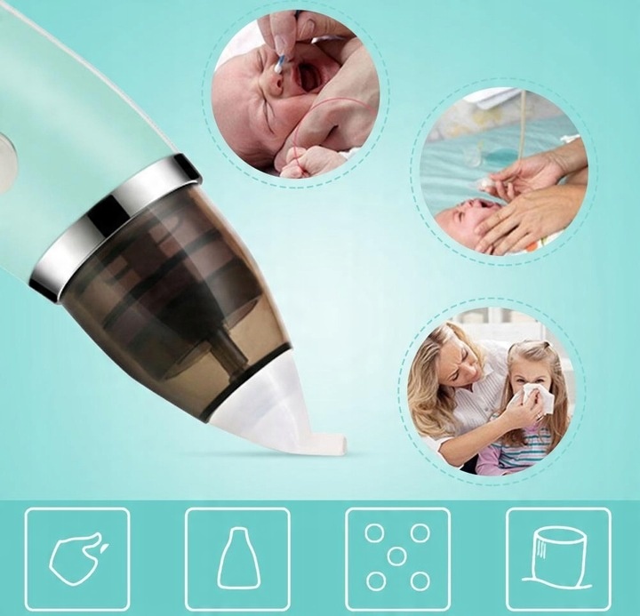 - Електроаспіратор - ефективний пристрій для очищення порожнини носа та пазух від слизу та нежиті. Пристрій забезпечує дуже сильне всмоктування, яке легко очищає ніс і забезпечує комфортне дихання під час сну і вдень. Пристрій має ергономічну форму, невеликий і легкий, тому його легко зберігати та брати з собою в подорож.