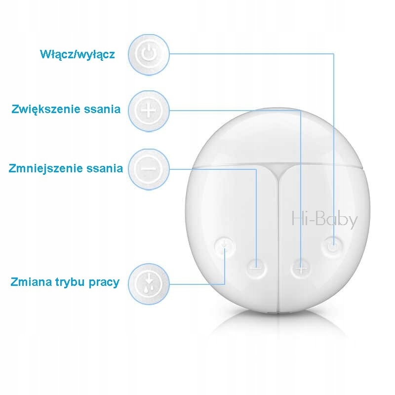 Молоковідсмоктувач RH228 вмикається за допомогою інтуїтивно зрозумілих сенсорних кнопок. Завдяки цьому навіть при зціджуванні молока вночі ми не розбудимо малюка зміною режимів роботи. Світлодіодні індикатори полегшують орієнтування у вибраному режимі.