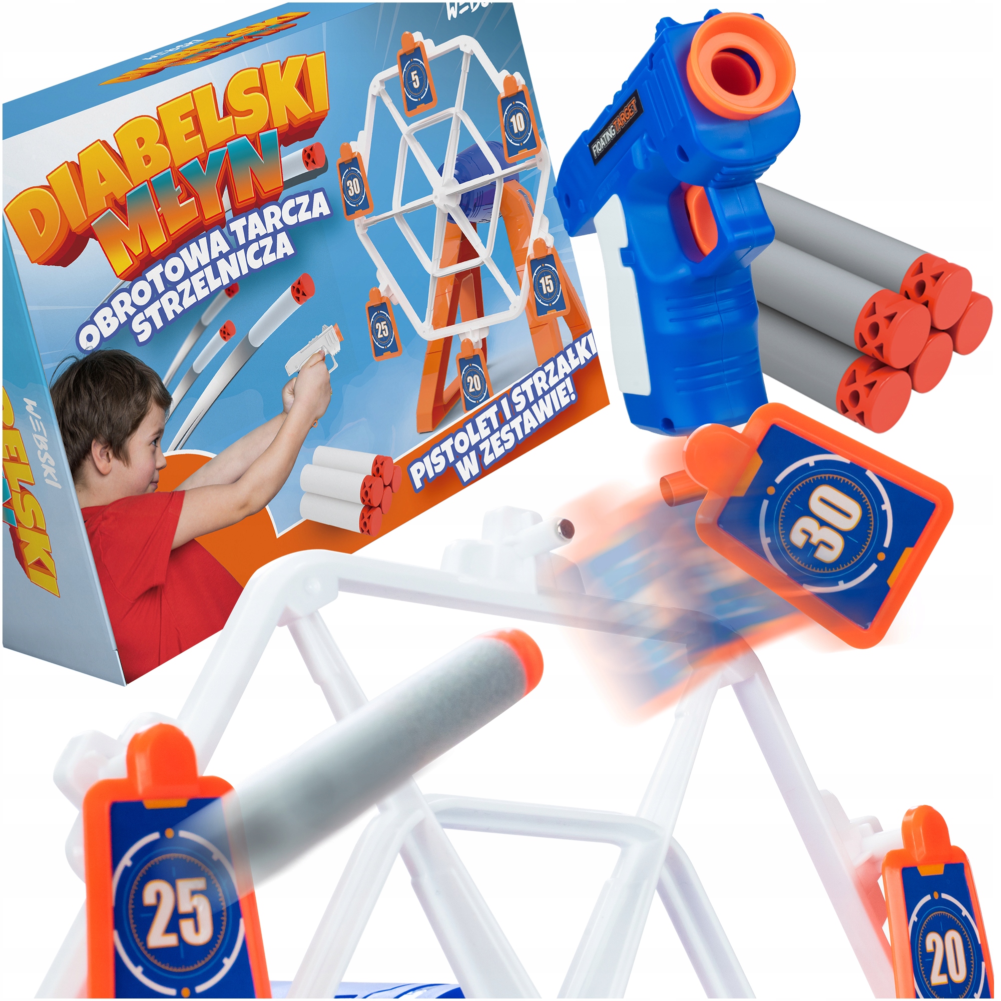 Це обертовий електричний диск із підвішеними мішенями у формі "колеса огляду". Ідеальна розвага для дітей і дорослих будь-якого віку. Візьміть свій іграшковий пістолет і перевірте свої навички в цій аркадній грі!