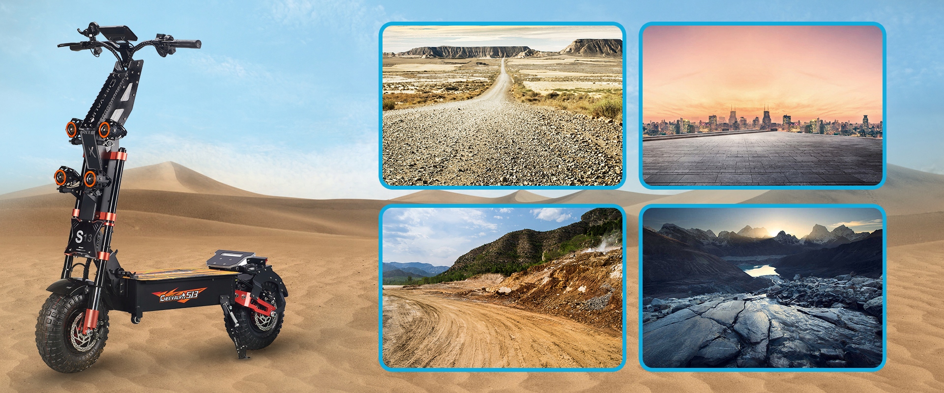 , оснащений 14-дюймовими пронизливими шинами, наш електричний транспортний засіб для дорослих легко переміщується на міських вулицях, польових районах та піщаних пляжах.