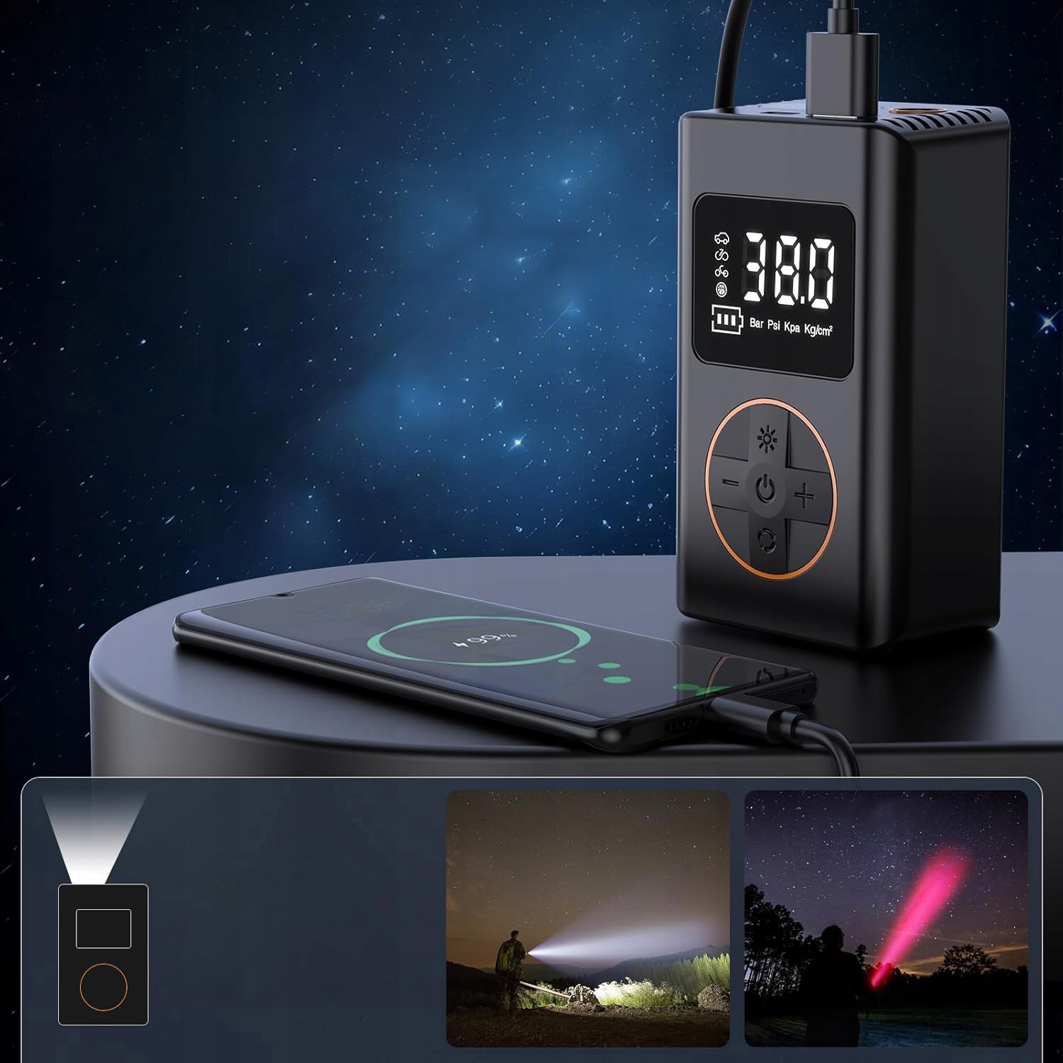 🏍 【Повітряний насос з акумулятором 3600 мАг і світлодіодним світлом 】🏍