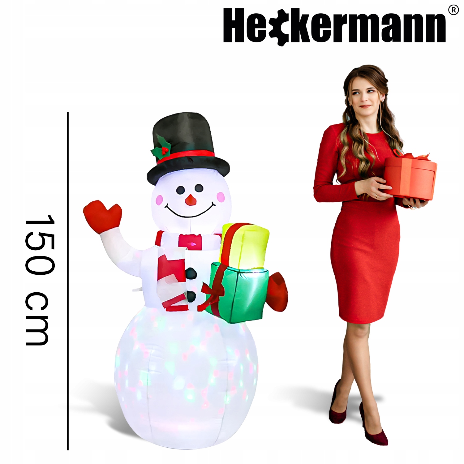 Електричний надувний світлодіодний сніговик Heckermann 150 см – ідеальна різдвяна прикраса
