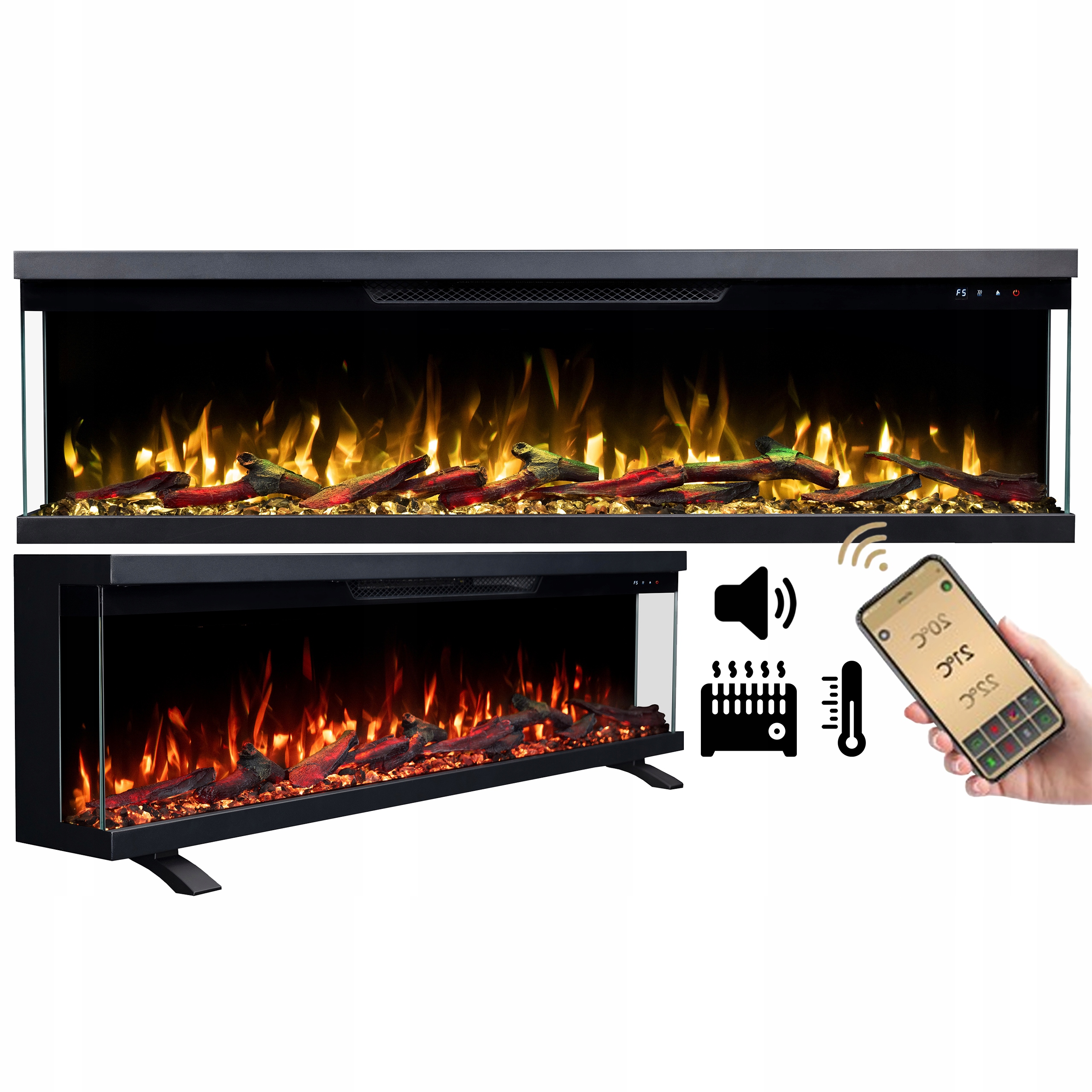 Тристоронній камін, який ідеально відображає реалістичний ефект полум'я. Прилад можна повісити на стіну або вбудувати в неї. П'ятнадцять доступних кольорів полум'я вражають своїм візуальним ефектом. Чорний корпус каміна ідеально підкреслить вишукані кольори полум'я, а тонка рамка дозволить насолоджуватися більшою площею каміна. Невелика глибина робить камін центральним елементом декору і надає інтер'єру неповторний характер.