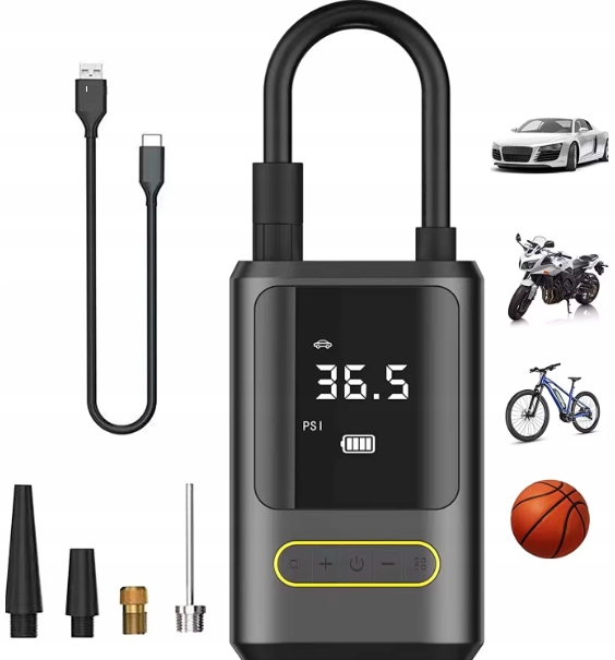 - ✅Багатофункціональність: накачує шини автомобілів, велосипедів, м’ячі та навіть матраци.